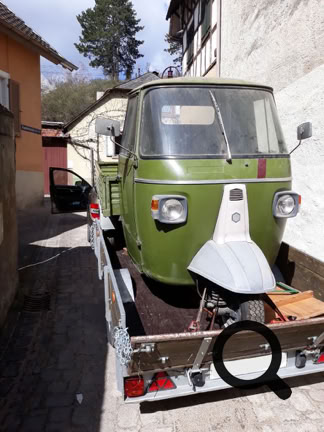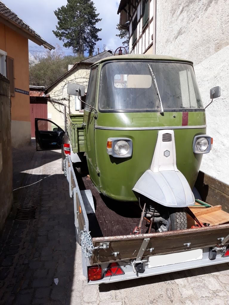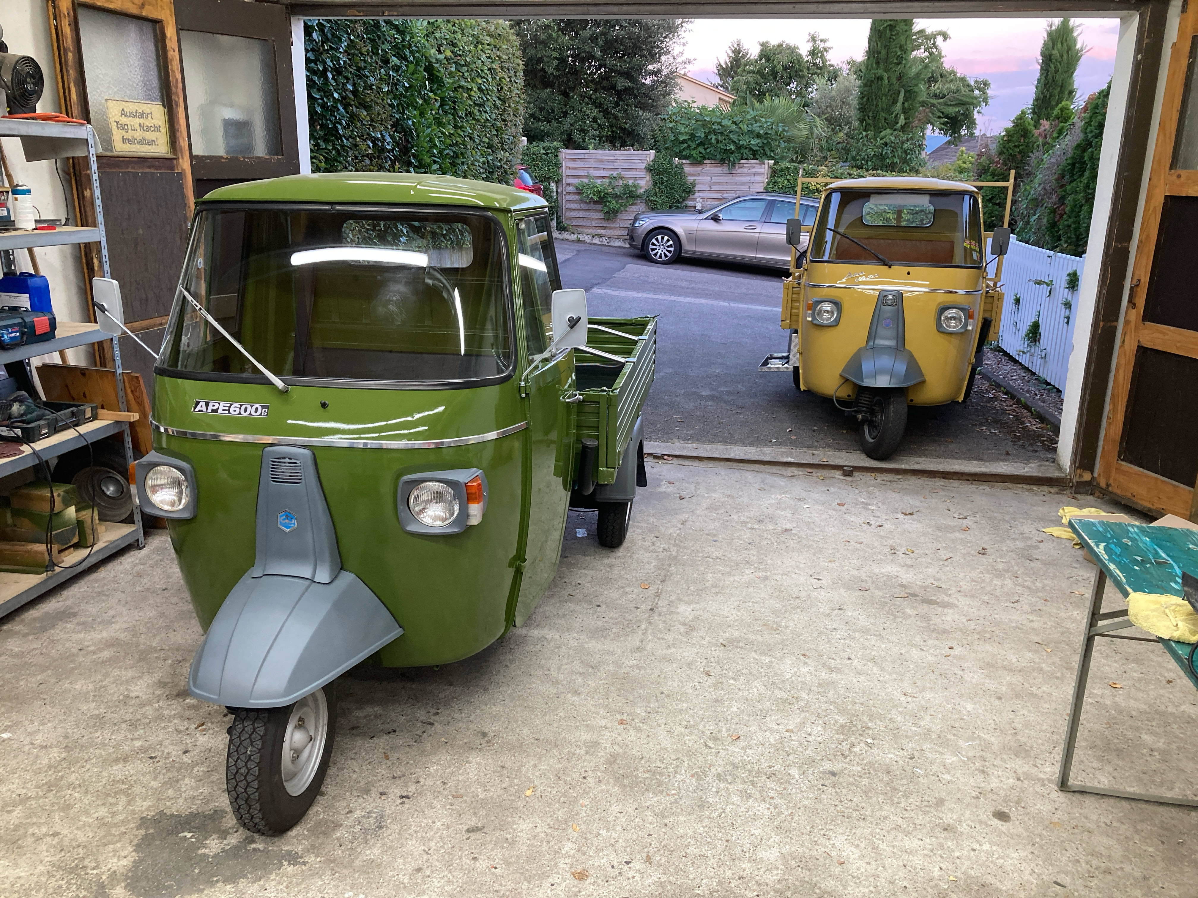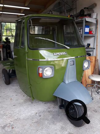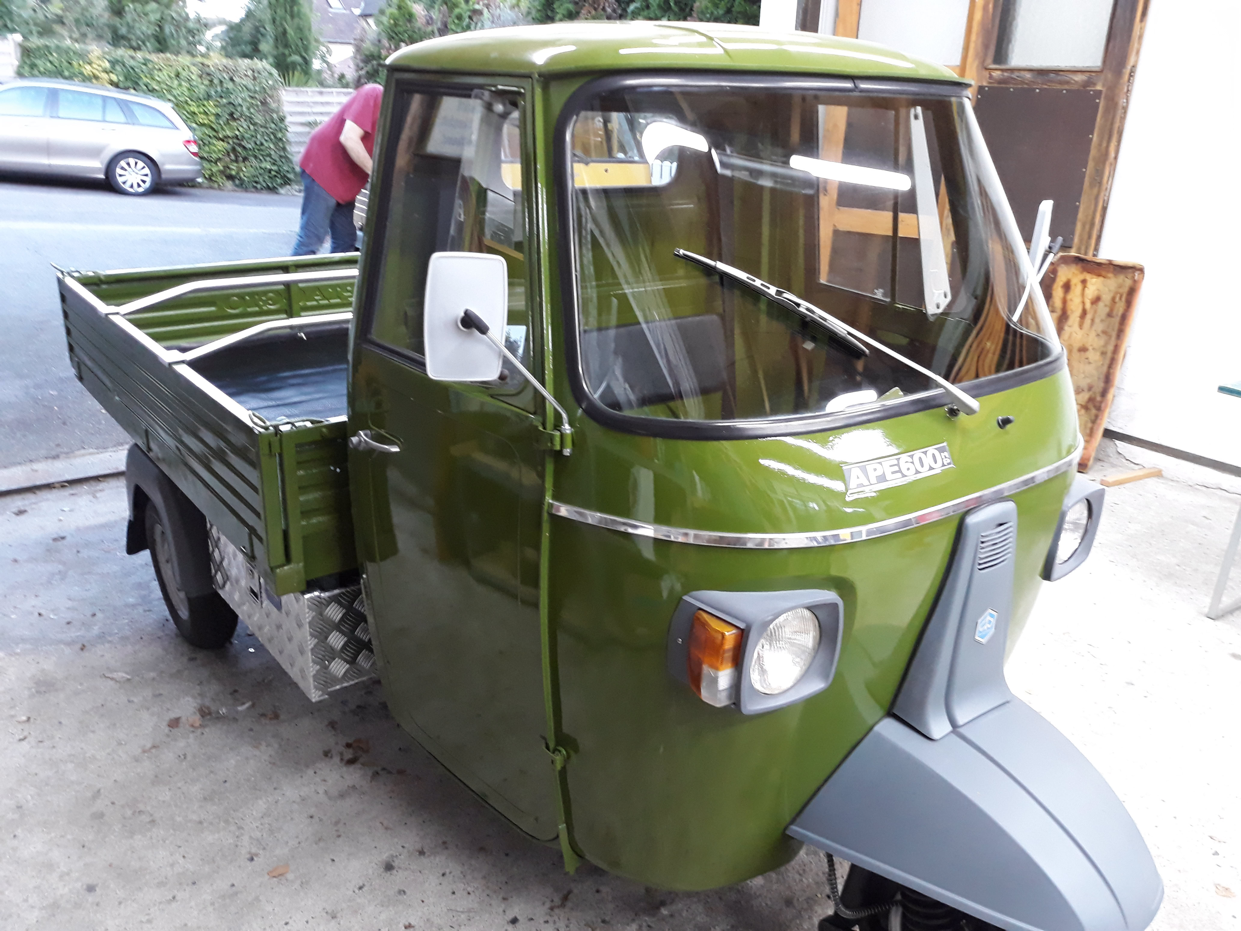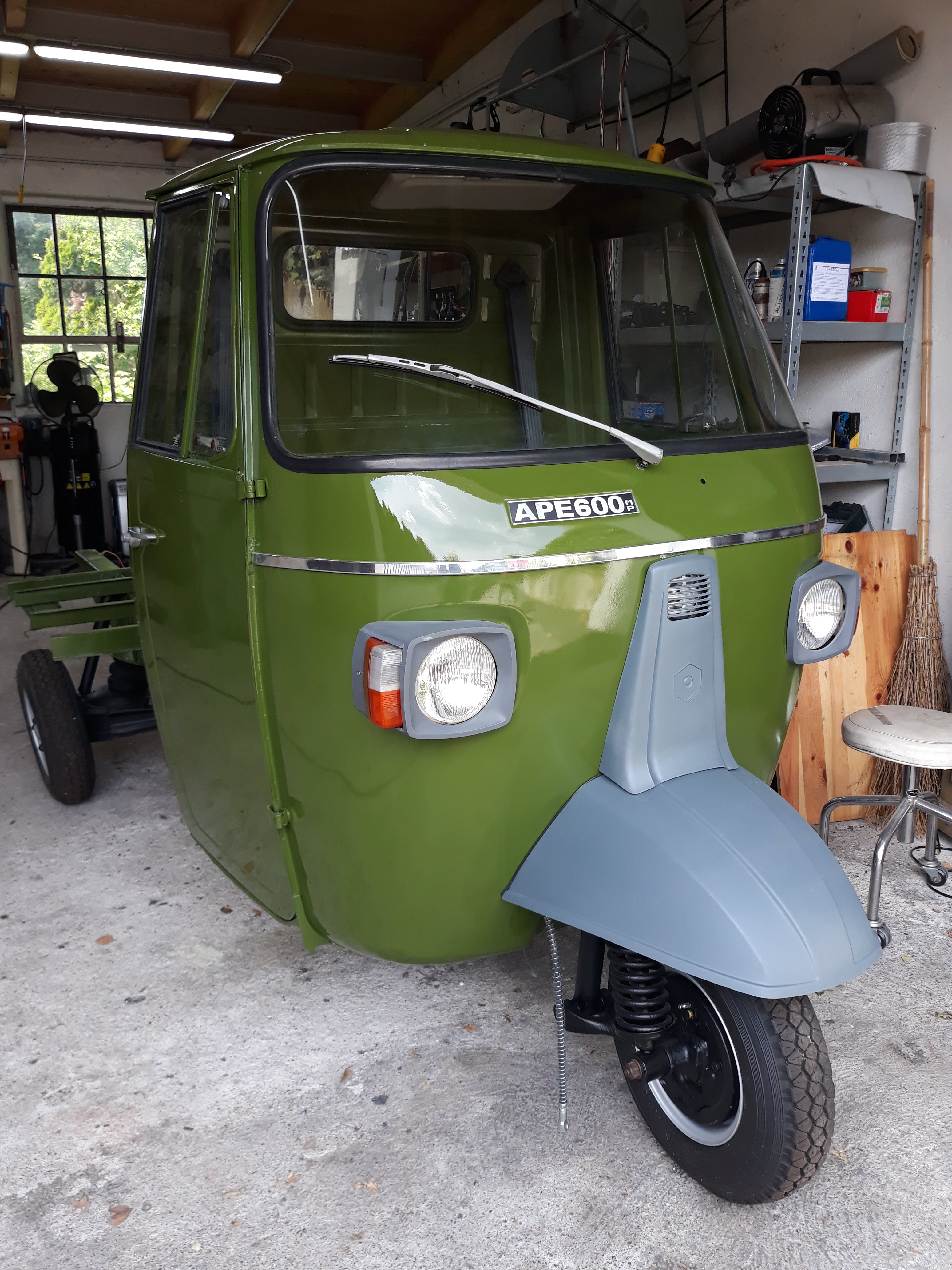 Ape 600 mp, Baujahr 1978, eine der Letzten dieses Modells, neu lackiert, Motor: Getriebeschaden und Loch im Gehäuse repariert, sämtliche Lager und Dichtungen erneuert, neuer Zylinder und Kolben, neue Kupplung, neuer Vergaser, neue Züge und viele Verschleißteile.
