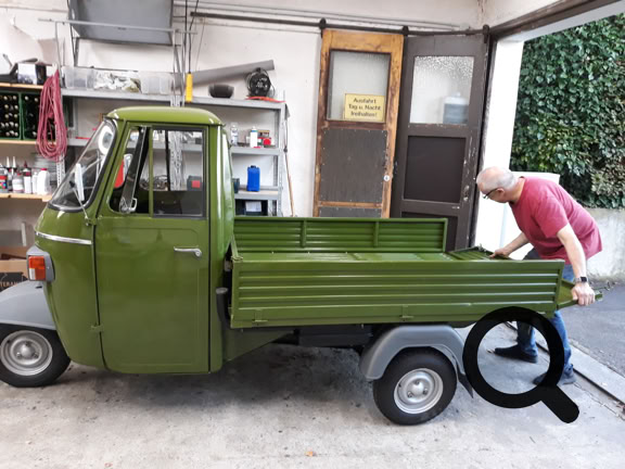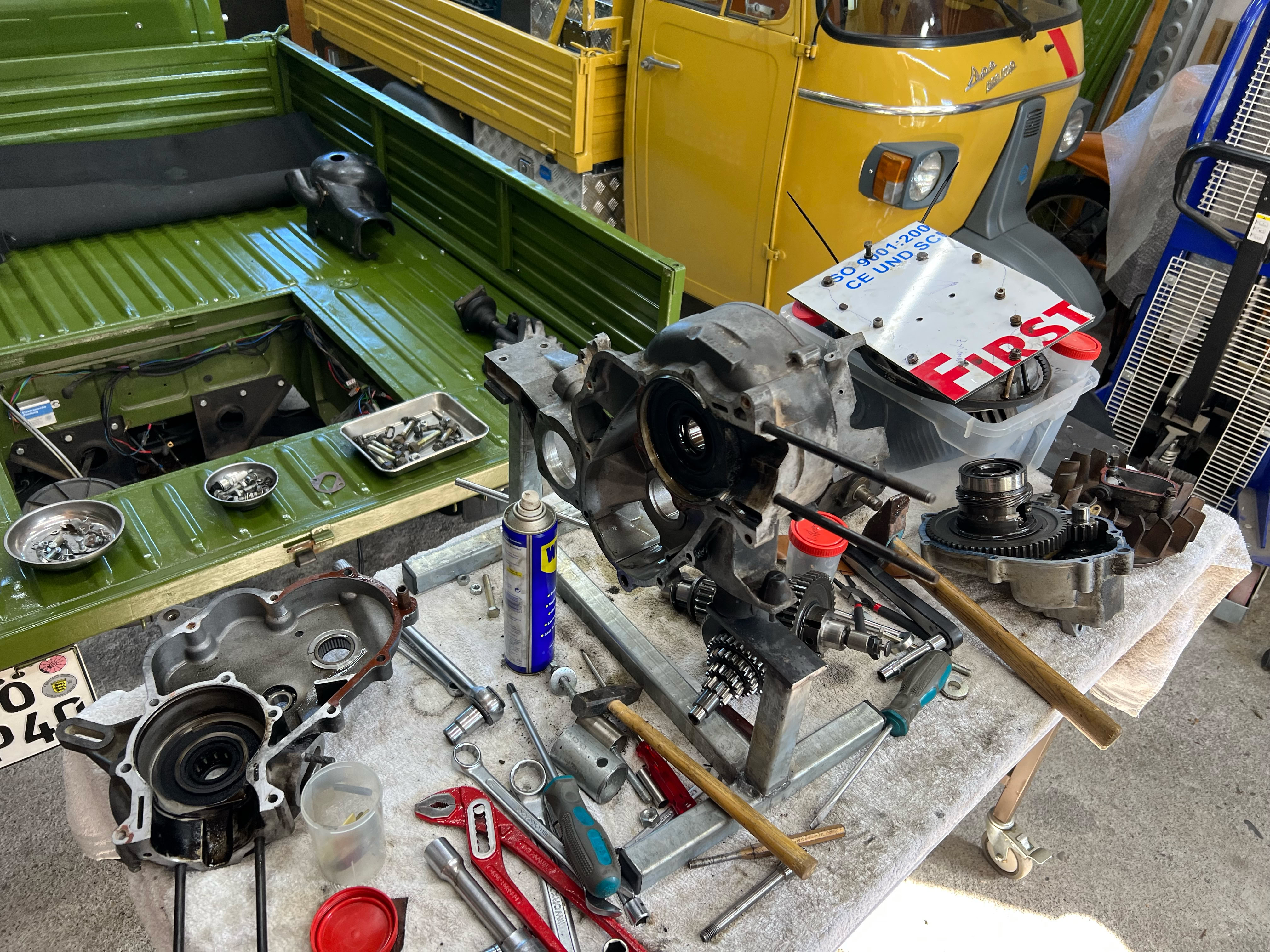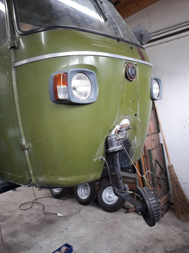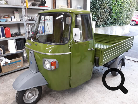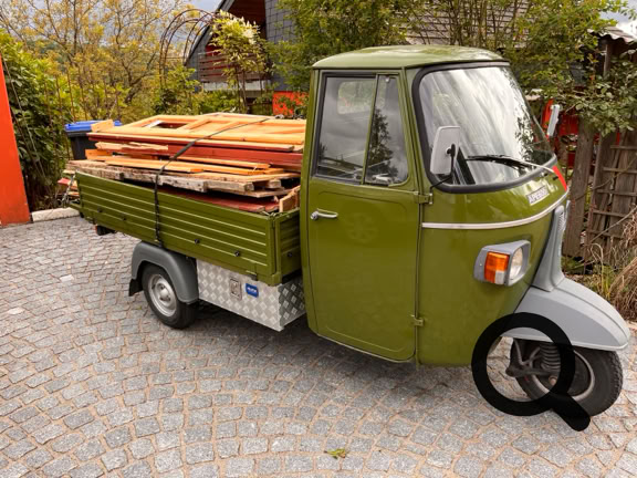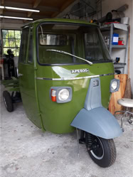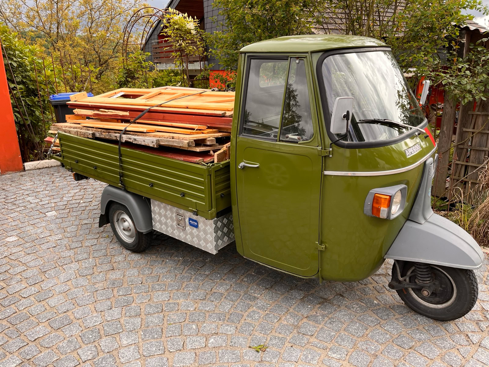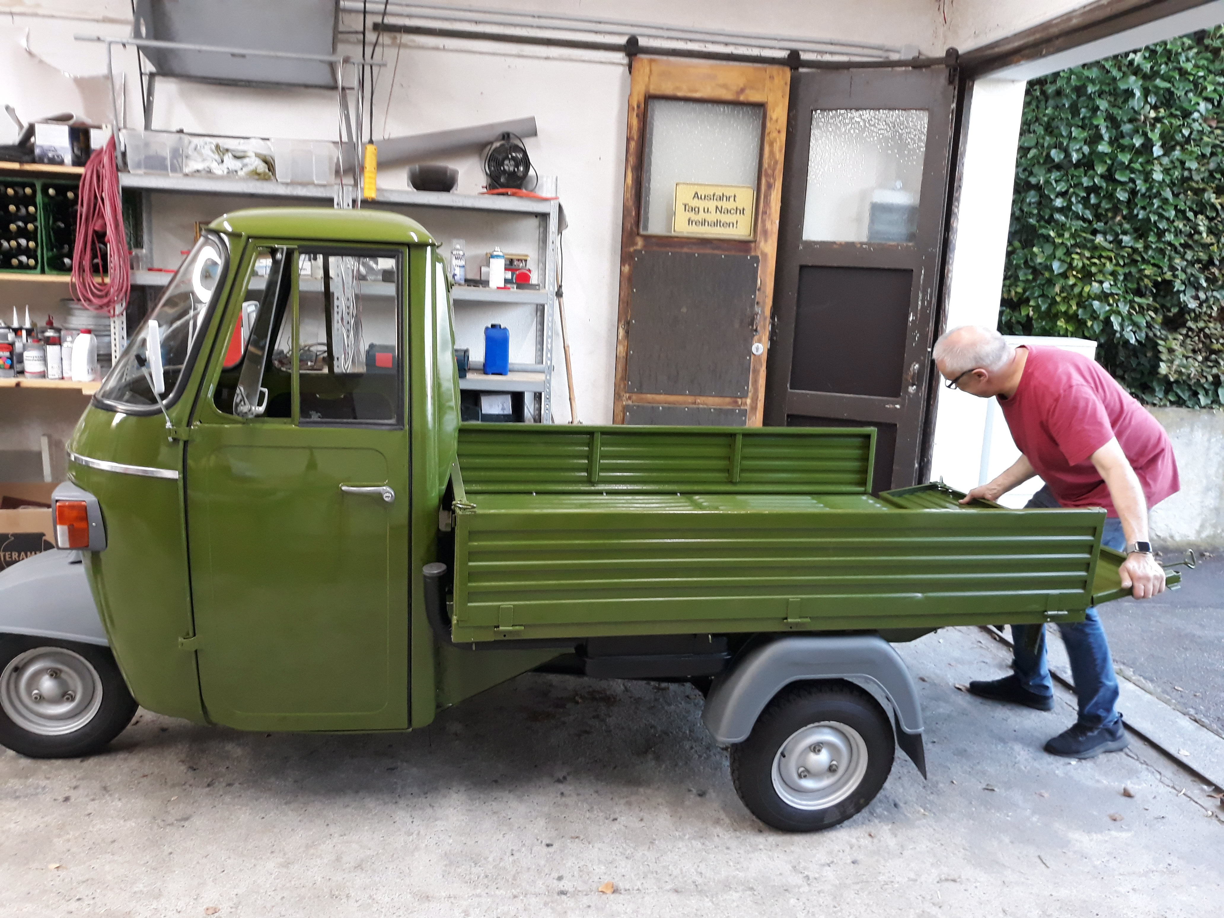 Ape 600 mp, Baujahr 1978, eine der Letzten dieses Modells, neu lackiert, Motor: Getriebeschaden und Loch im Gehäuse repariert, sämtliche Lager und Dichtungen erneuert, neuer Zylinder und Kolben, neue Kupplung, neuer Vergaser, neue Züge und viele Verschleißteile.