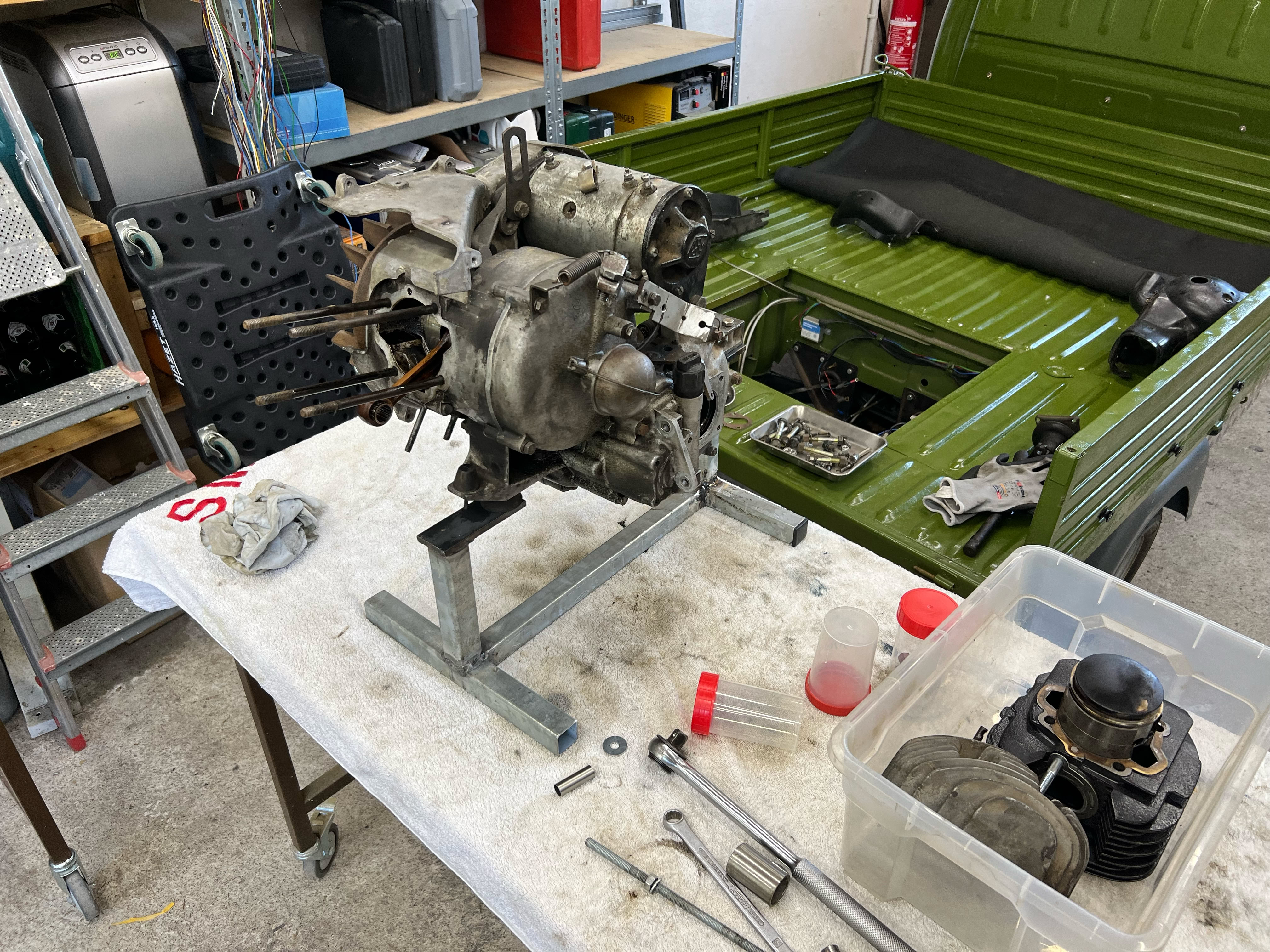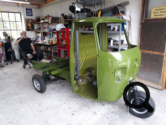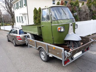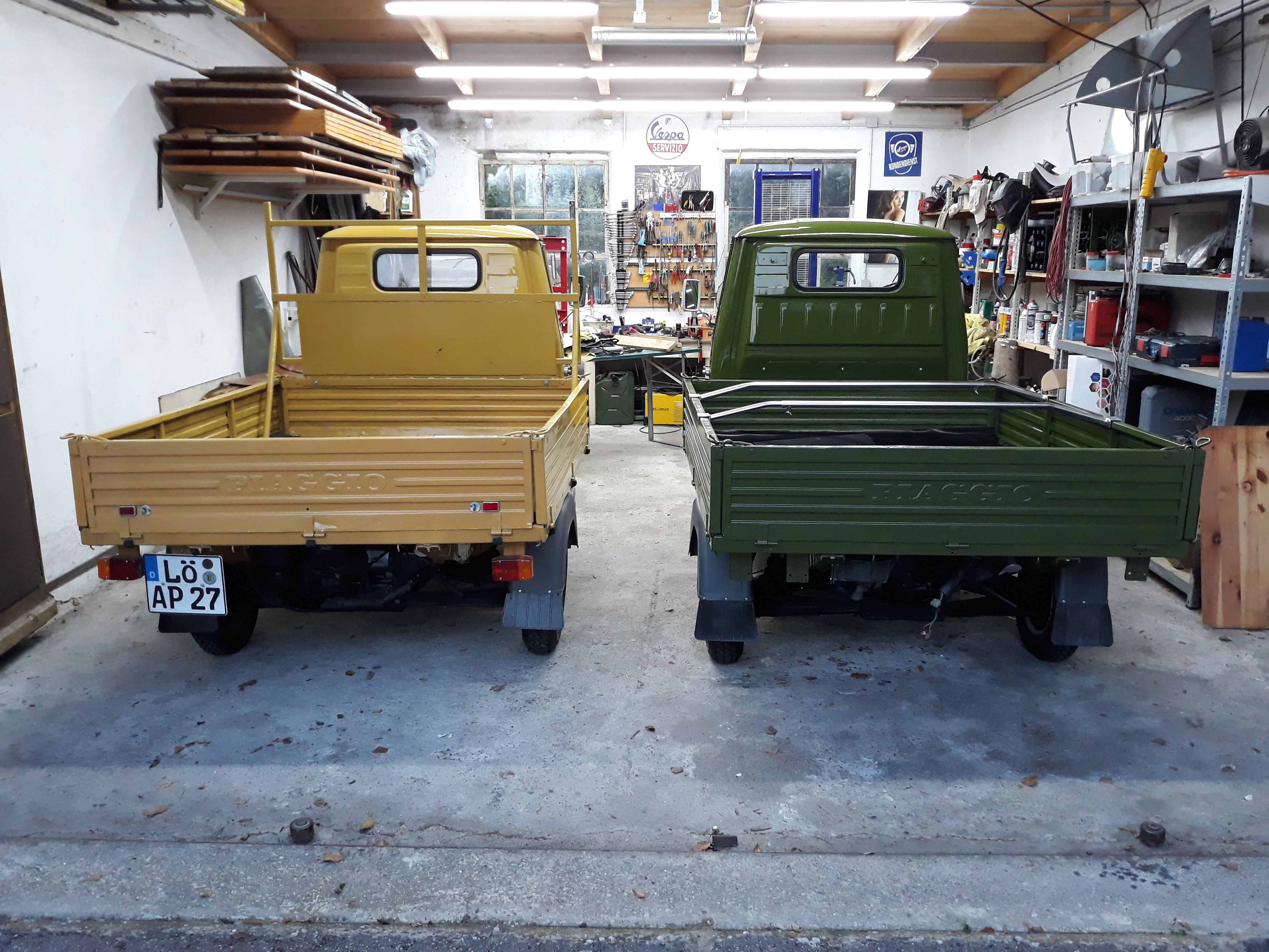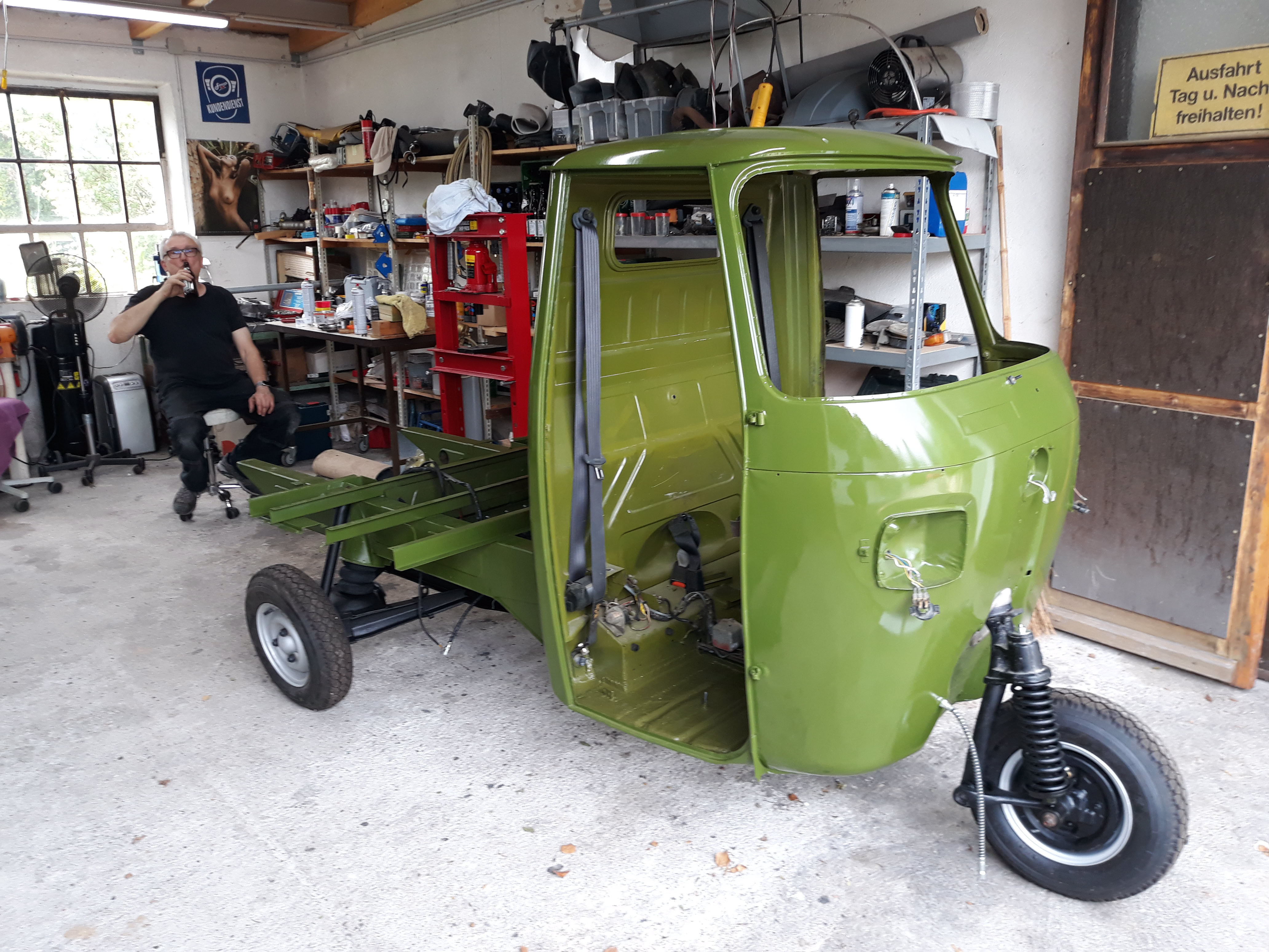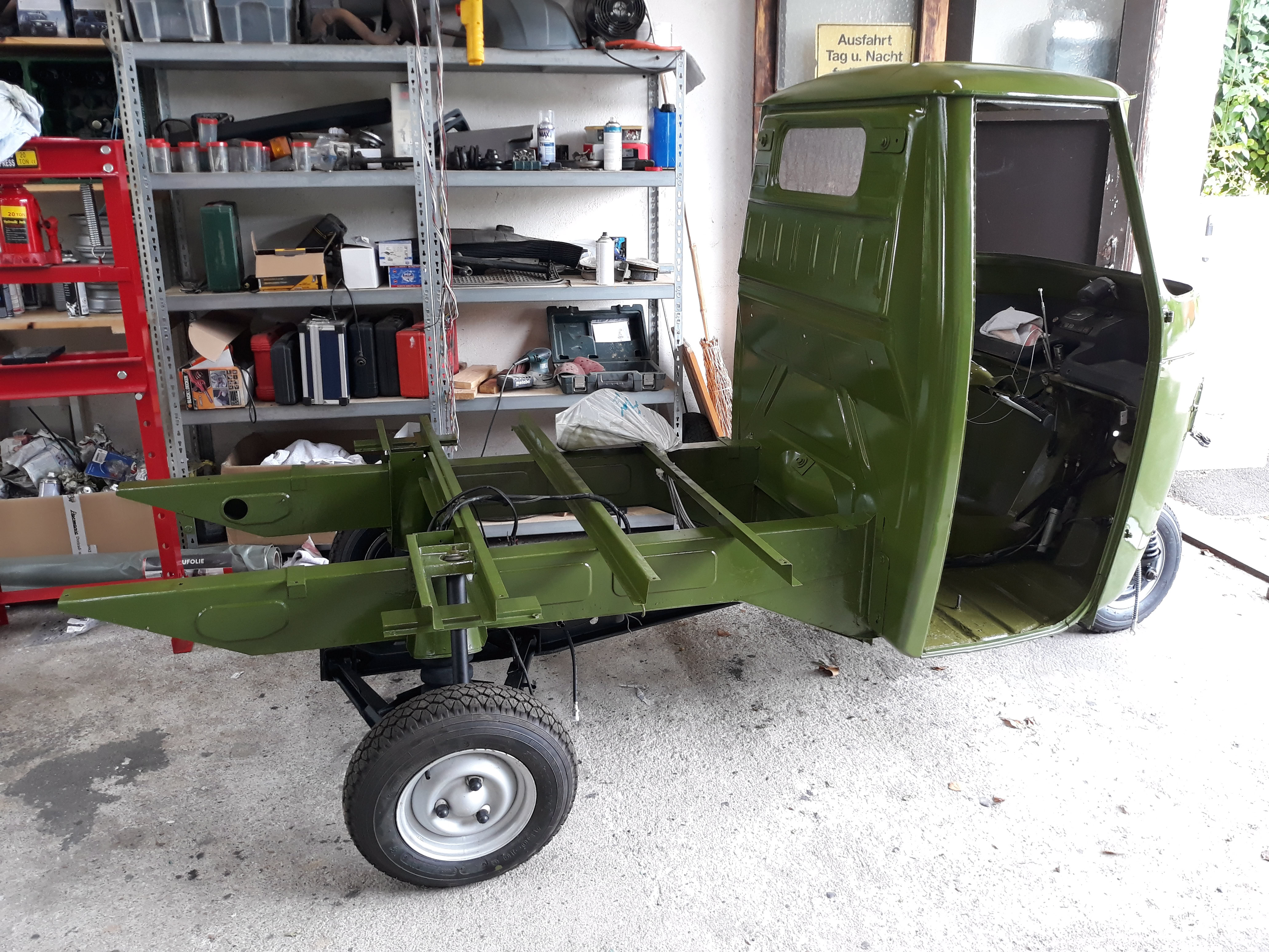 Ape 600 mp, Baujahr 1978, eine der Letzten dieses Modells, neu lackiert, Motor: Getriebeschaden und Loch im Gehäuse repariert, sämtliche Lager und Dichtungen erneuert, neuer Zylinder und Kolben, neue Kupplung, neuer Vergaser, neue Züge und viele Verschleißteile.