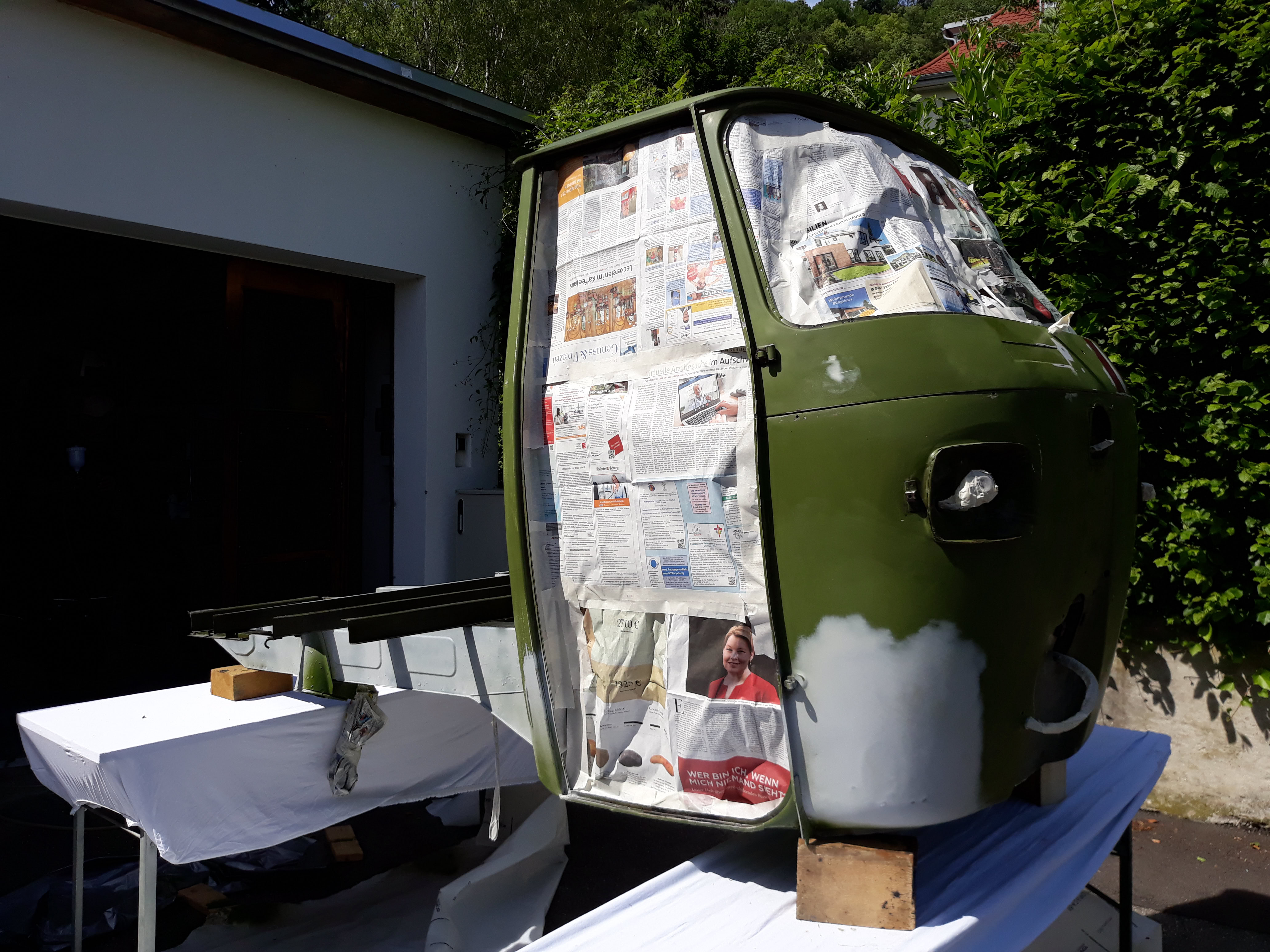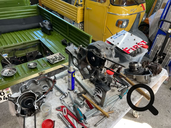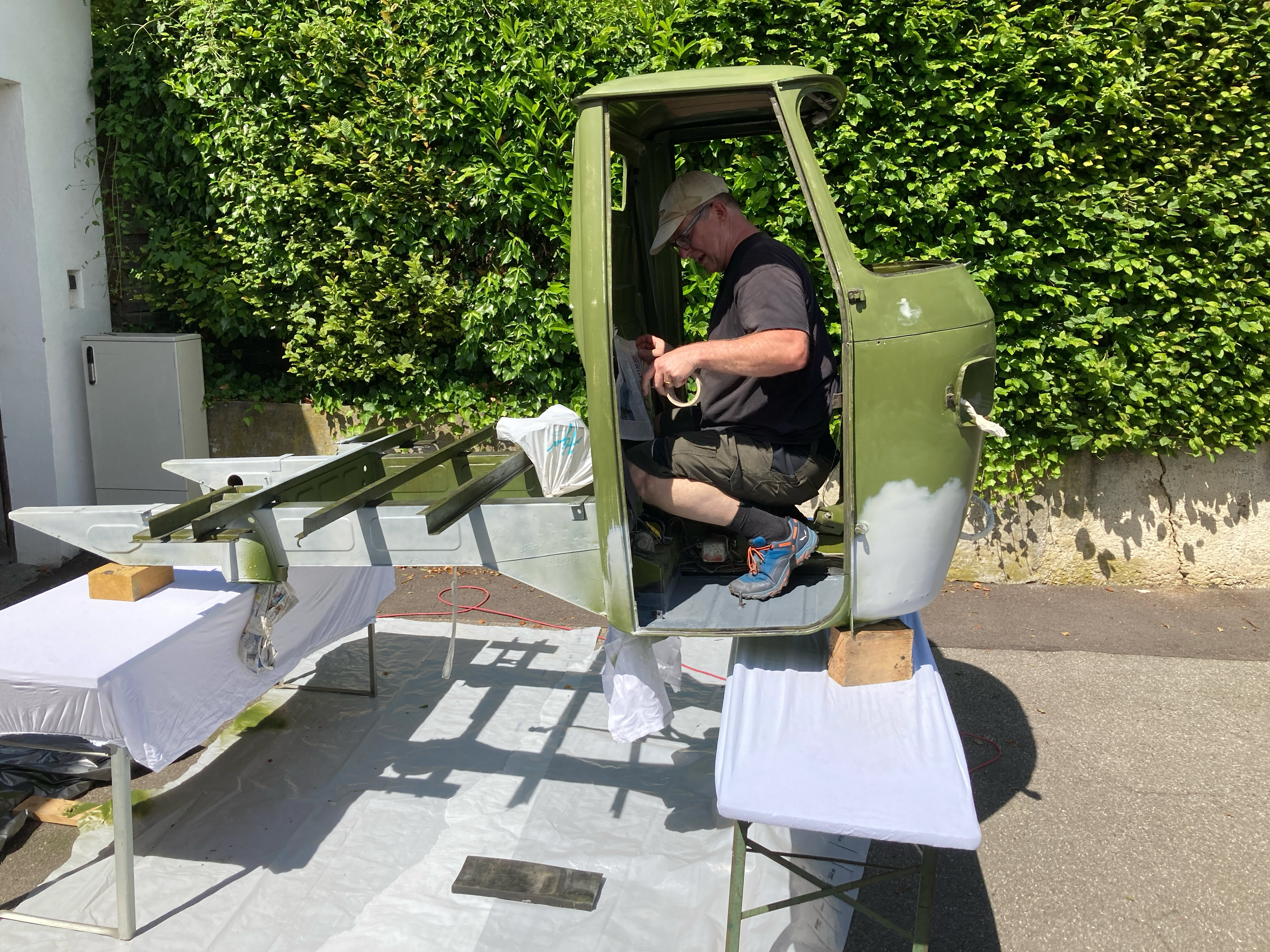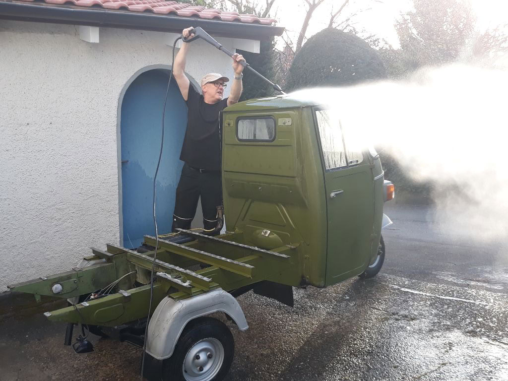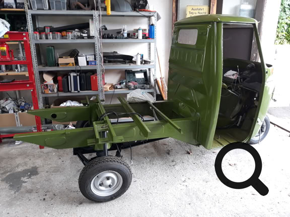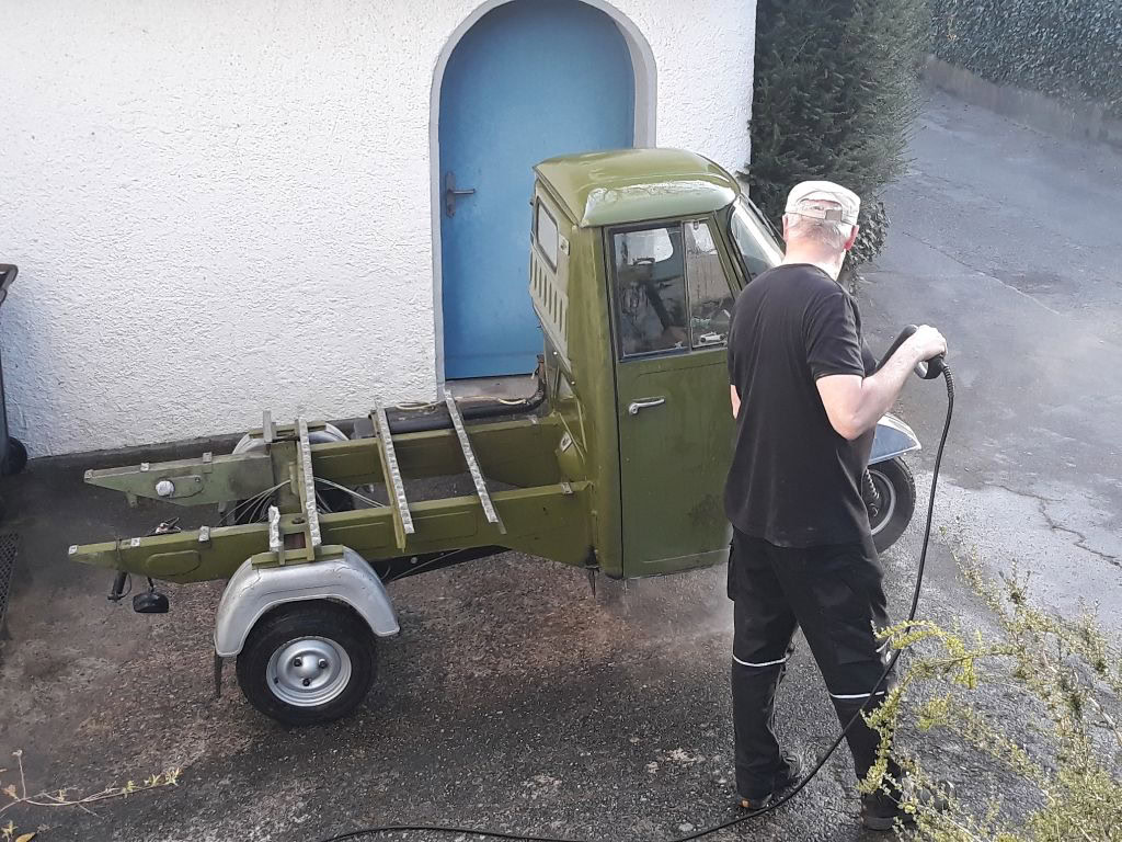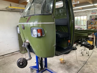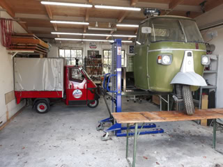 Ape 600 mp, Baujahr 1978, eine der Letzten dieses Modells, neu lackiert, Motor: Getriebeschaden und Loch im Gehäuse repariert, sämtliche Lager und Dichtungen erneuert, neuer Zylinder und Kolben, neue Kupplung, neuer Vergaser, neue Züge und viele Verschleißteile.