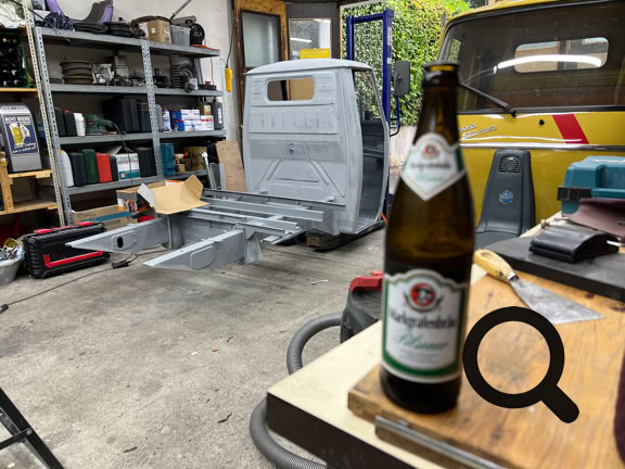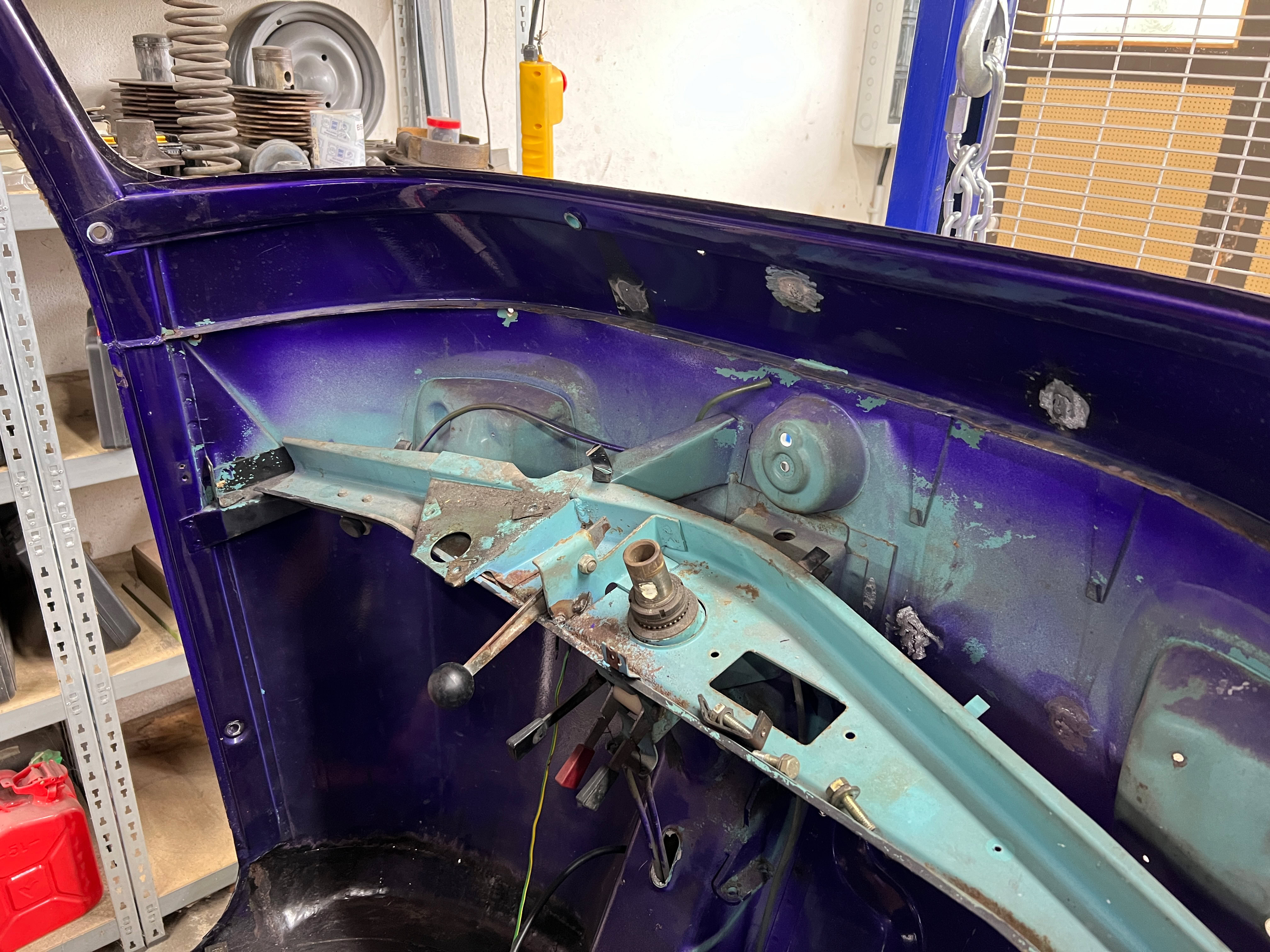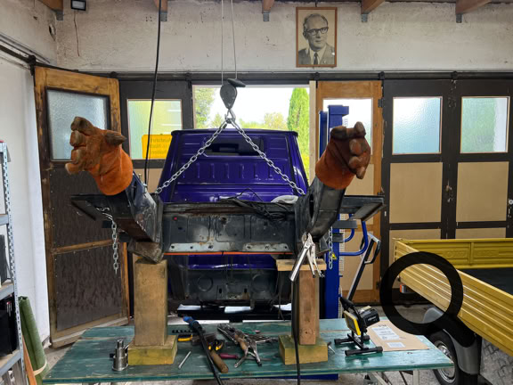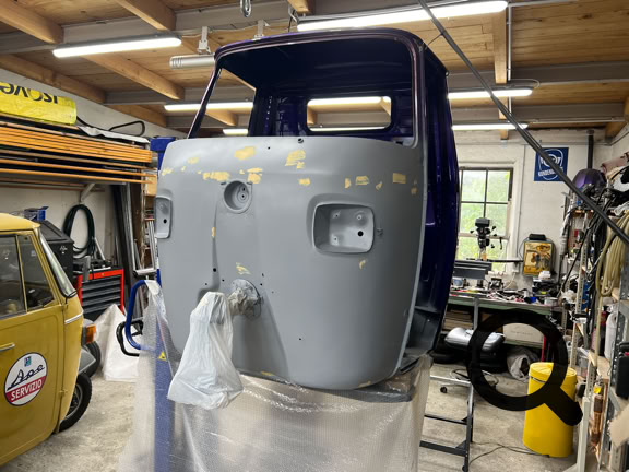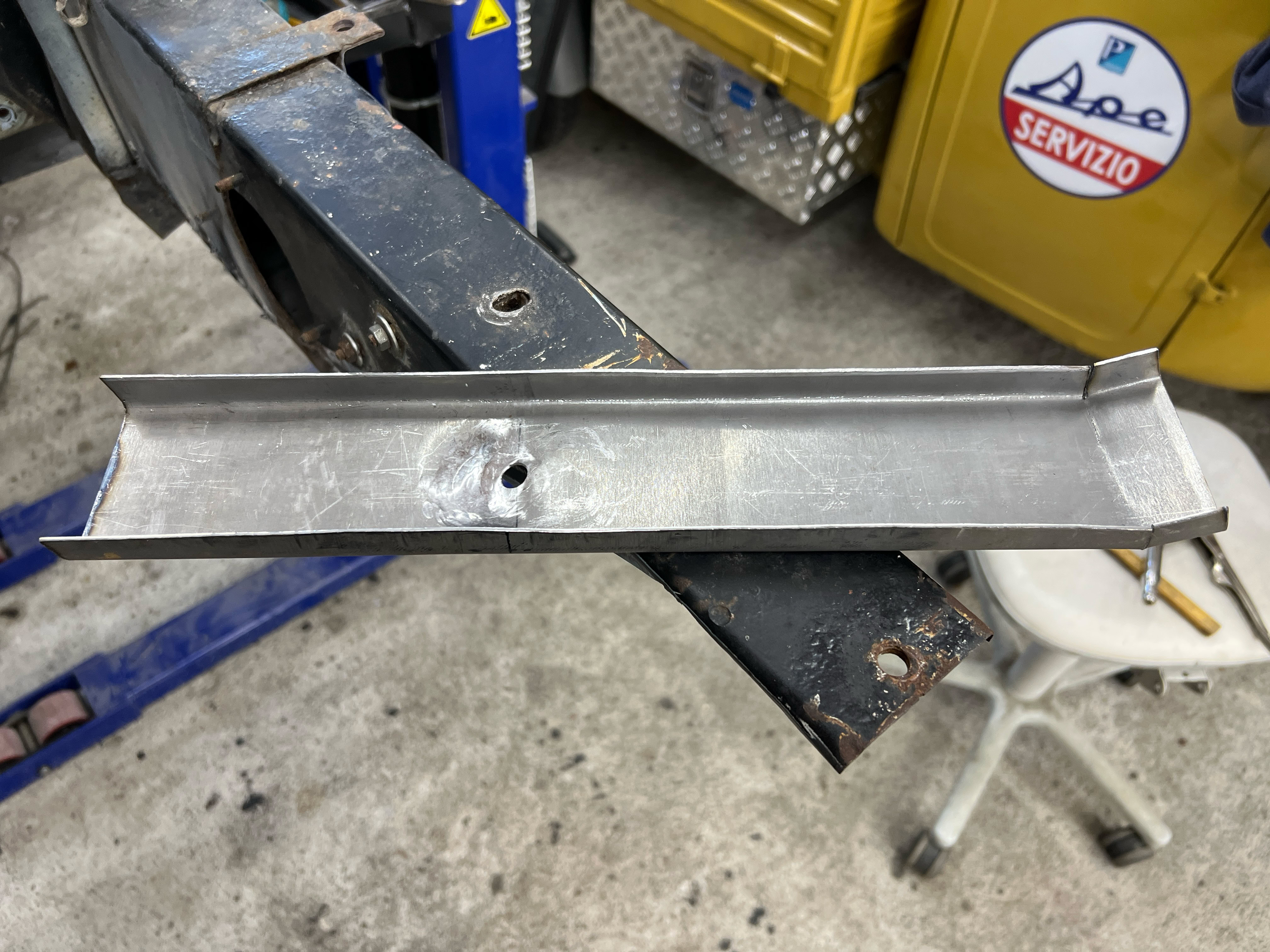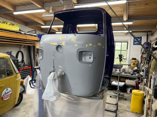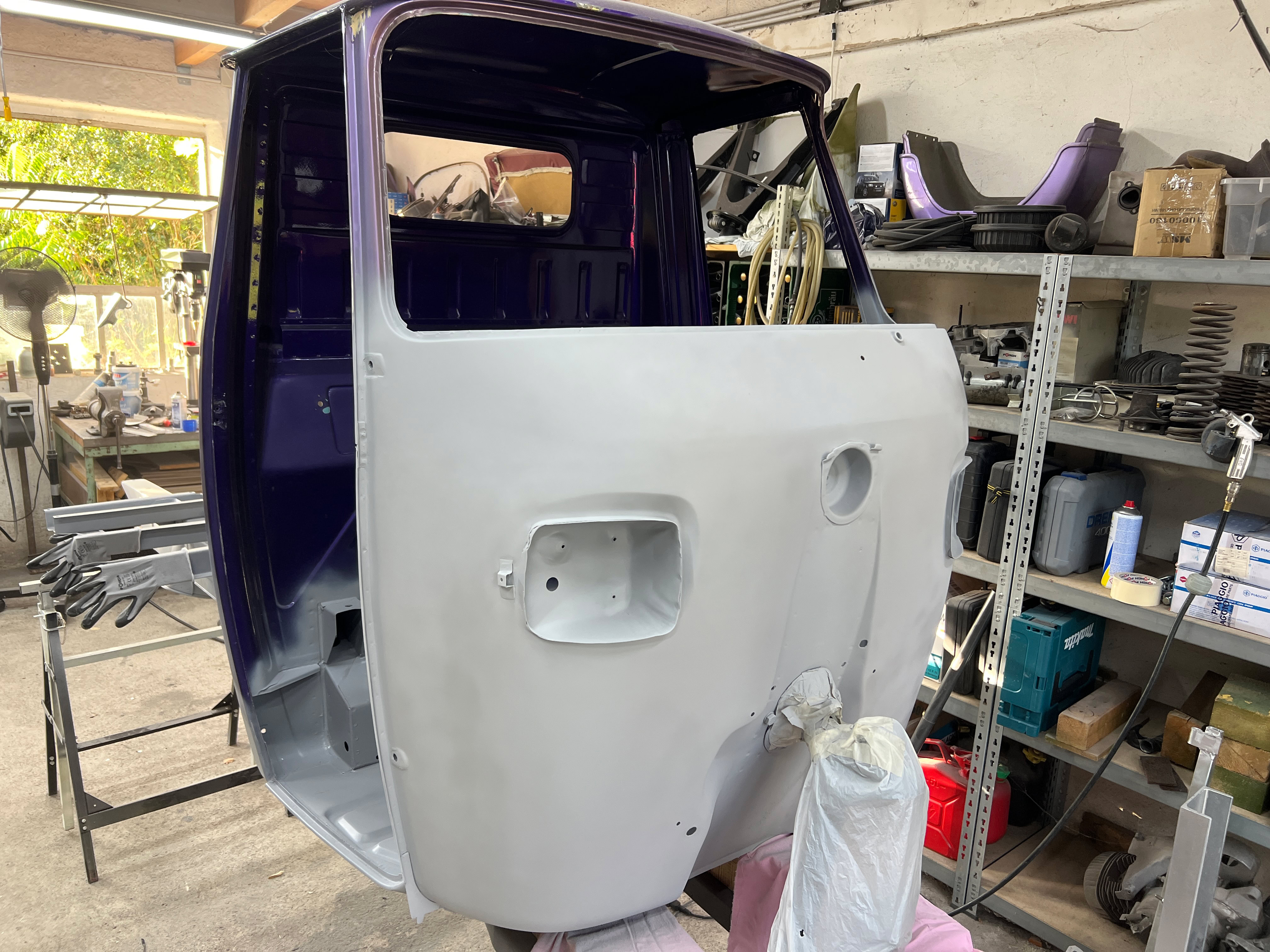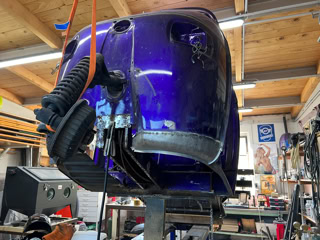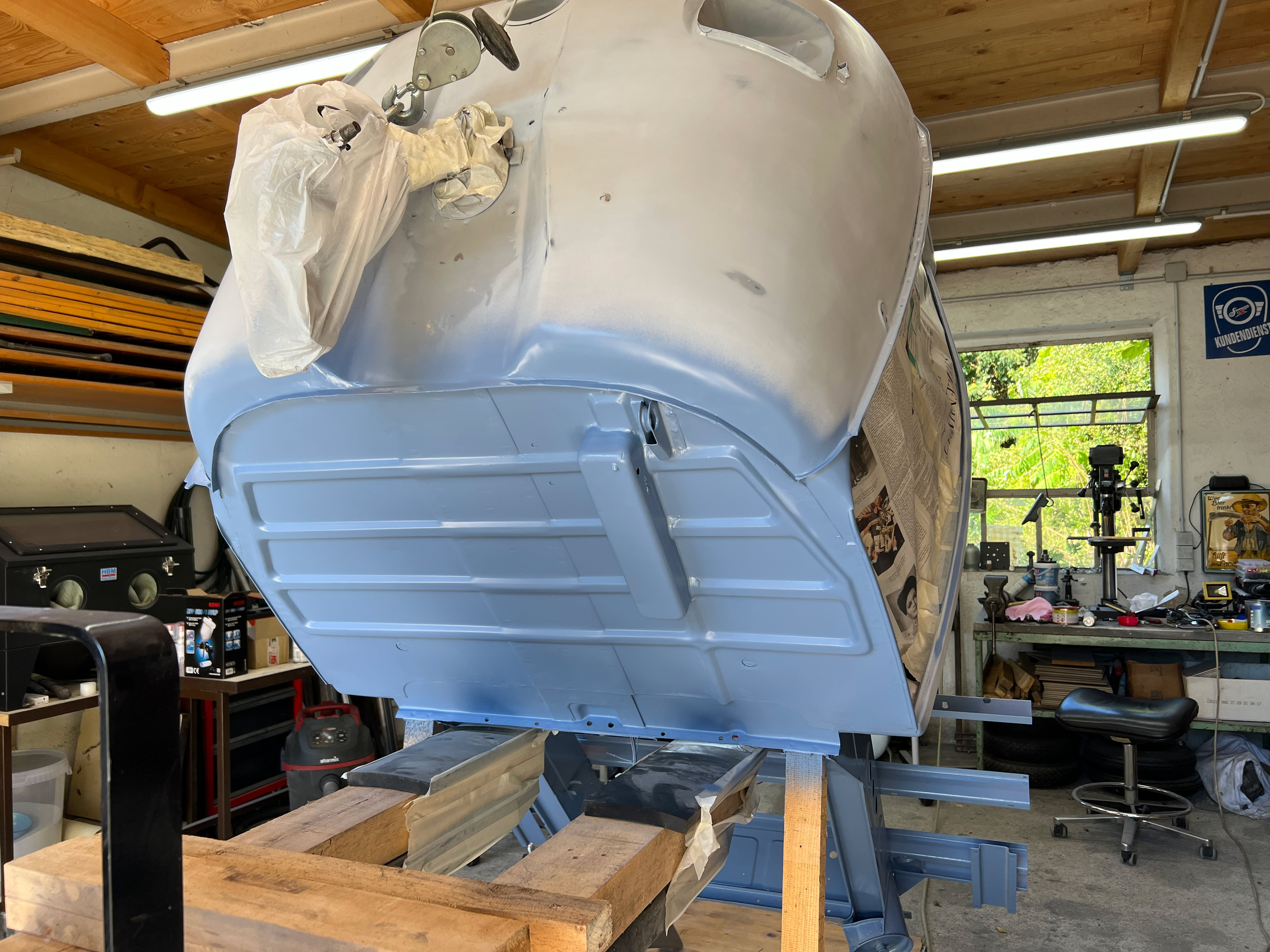 Ape 600 mpv, Baujahr 1972, ursprünglich als Eiswagen umgebaut. Jetzt ohne Pritsche und Motor erworben. Die Ape wurde zerlegt, geschweißt und neu aufgebaut. Ein gebrauchter Motor wurde komplett aufgearbeitet und eingebaut. Die Ape ist inzwischen taubenblau lackiert. Zur Zeit ist die Ladefläche in Arbeit. Es ist eine 2m-Pritsche einer Ape Classic. Deren Motorklappe wurde deshalb entsprechend versetzt und die Unterkonstruktion angepasst.