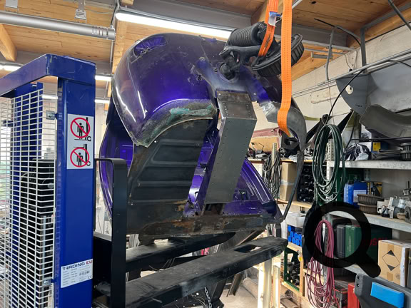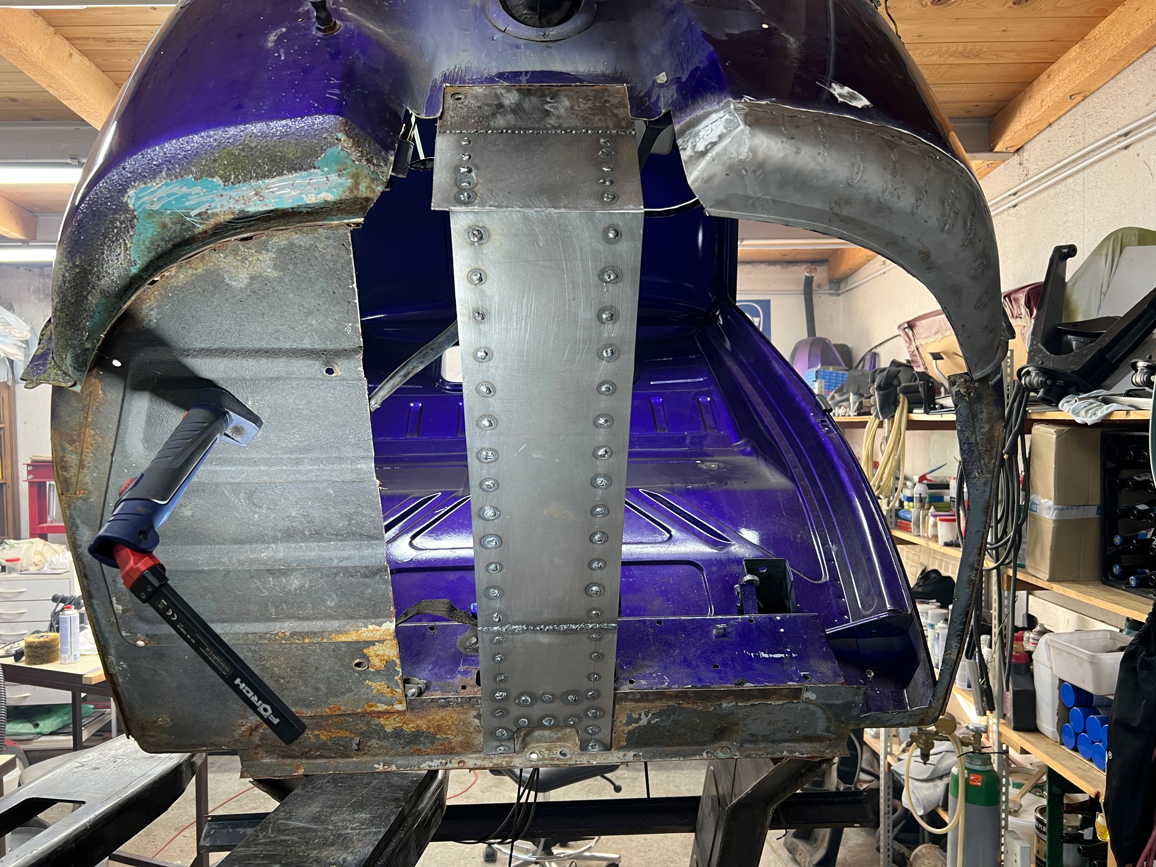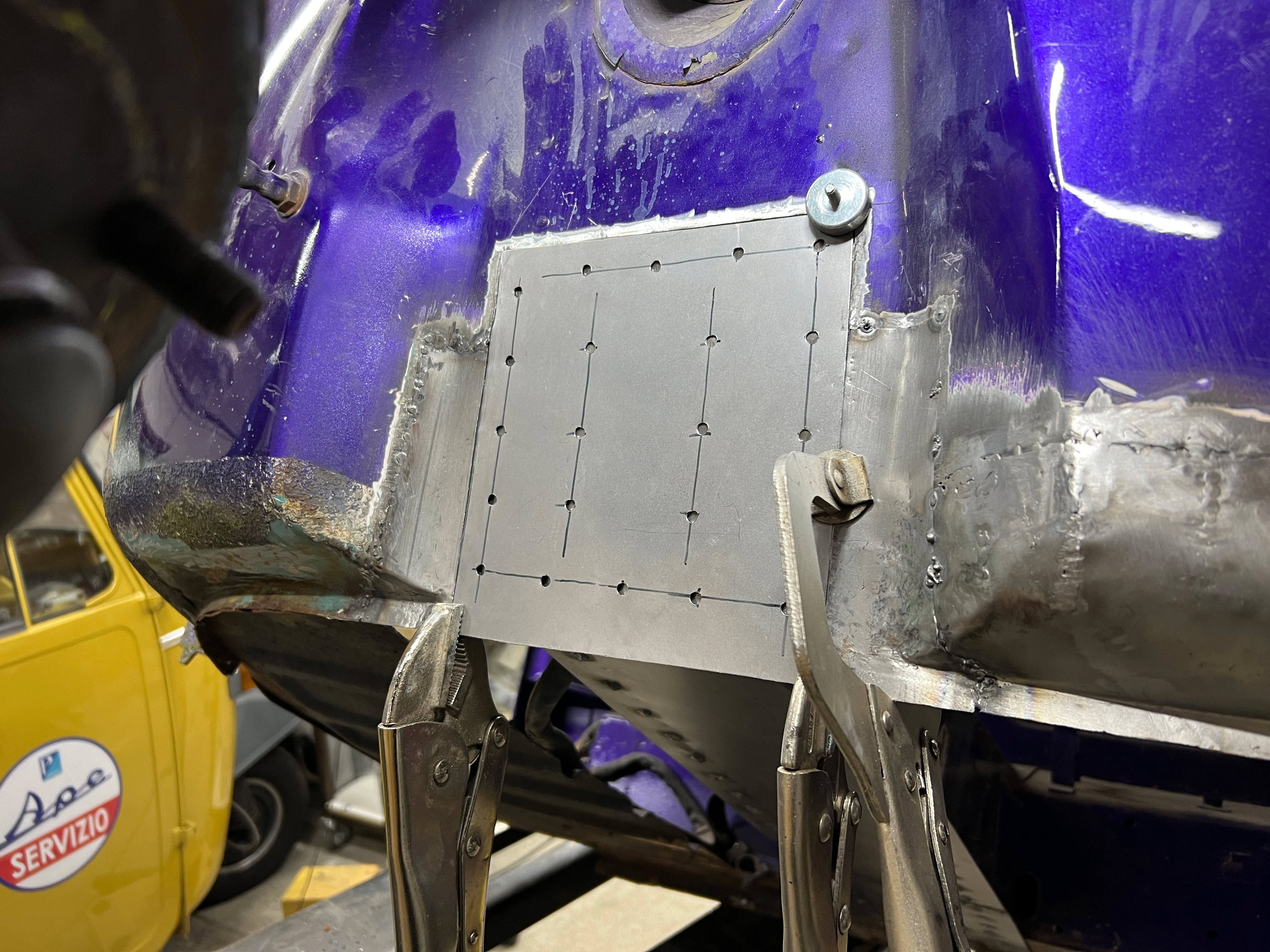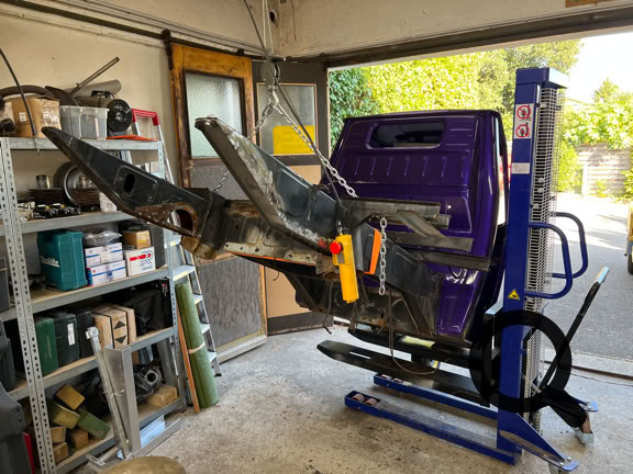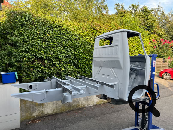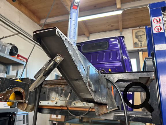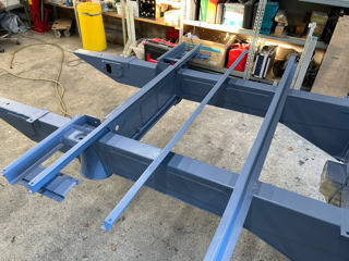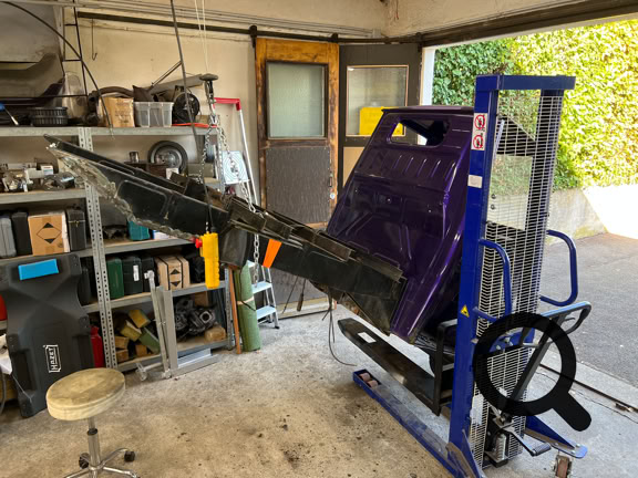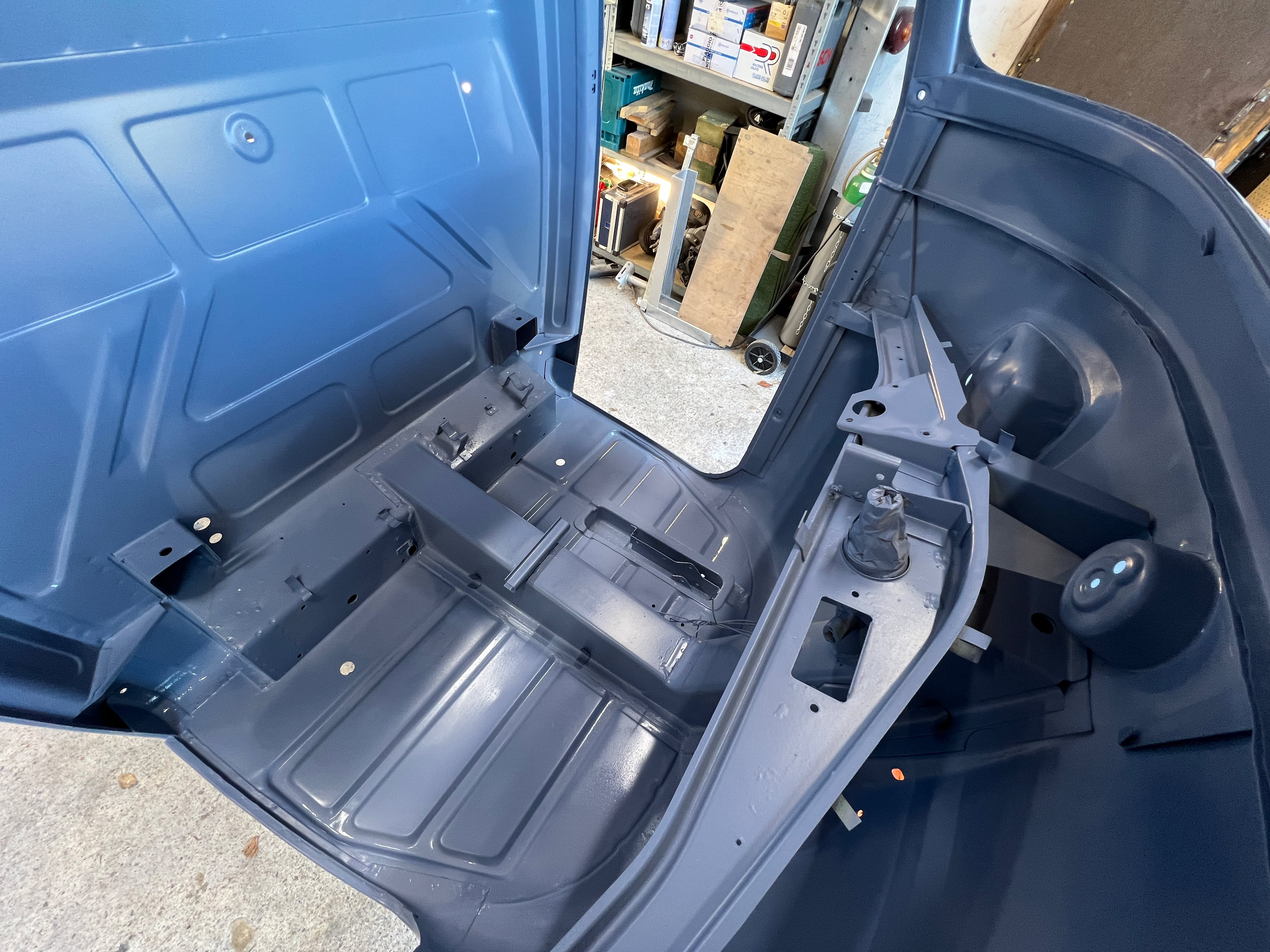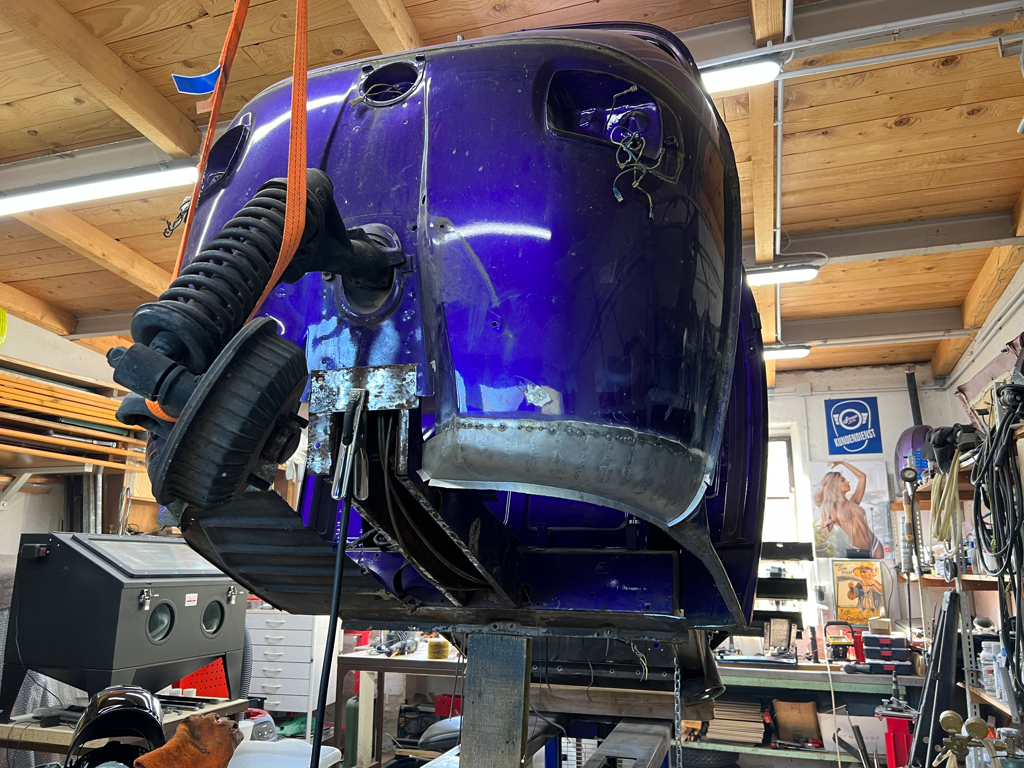 Ape 600 mpv, Baujahr 1972, ursprünglich als Eiswagen umgebaut. Jetzt ohne Pritsche und Motor erworben. Die Ape wurde zerlegt, geschweißt und neu aufgebaut. Ein gebrauchter Motor wurde komplett aufgearbeitet und eingebaut. Die Ape ist inzwischen taubenblau lackiert. Zur Zeit ist die Ladefläche in Arbeit. Es ist eine 2m-Pritsche einer Ape Classic. Deren Motorklappe wurde deshalb entsprechend versetzt und die Unterkonstruktion angepasst.