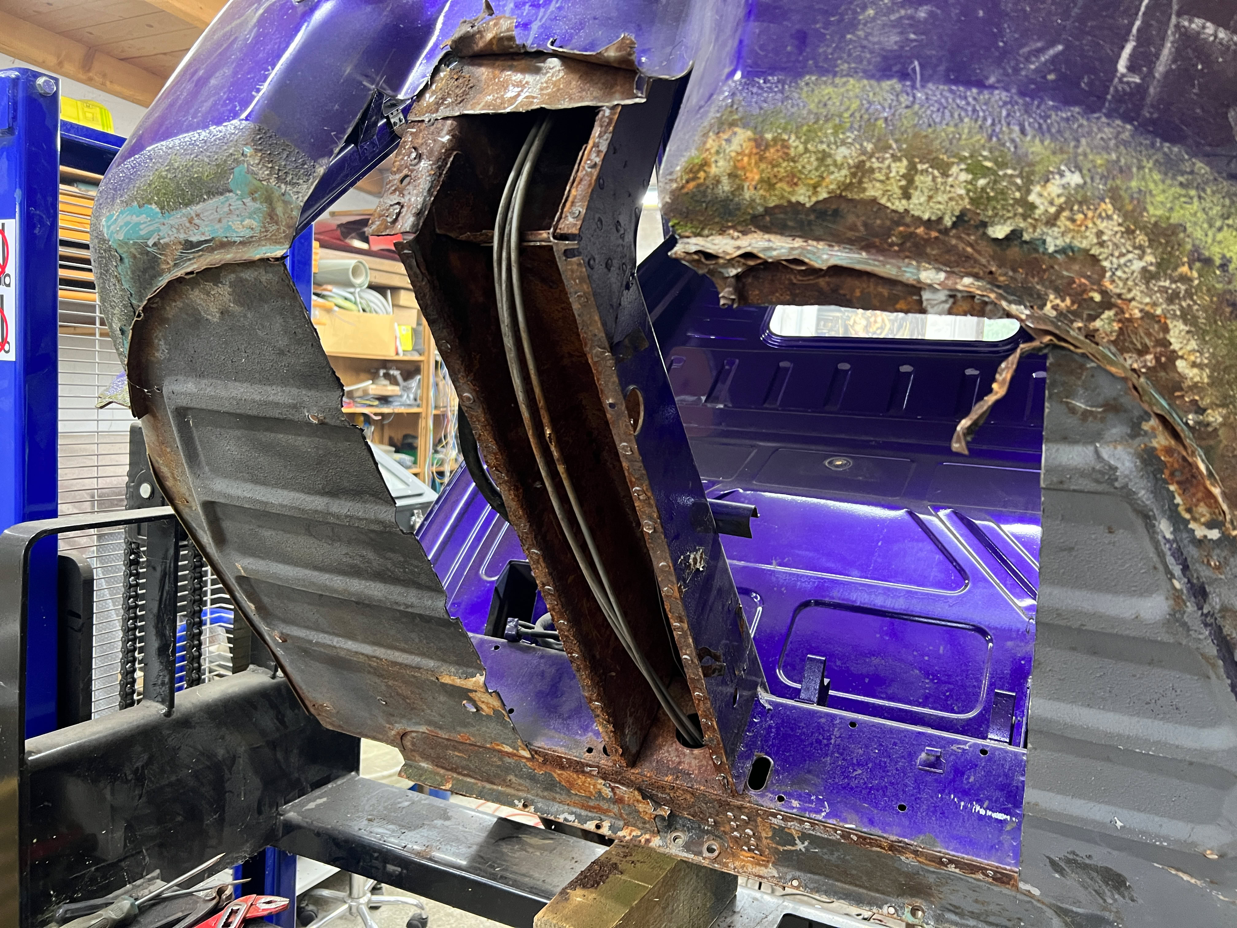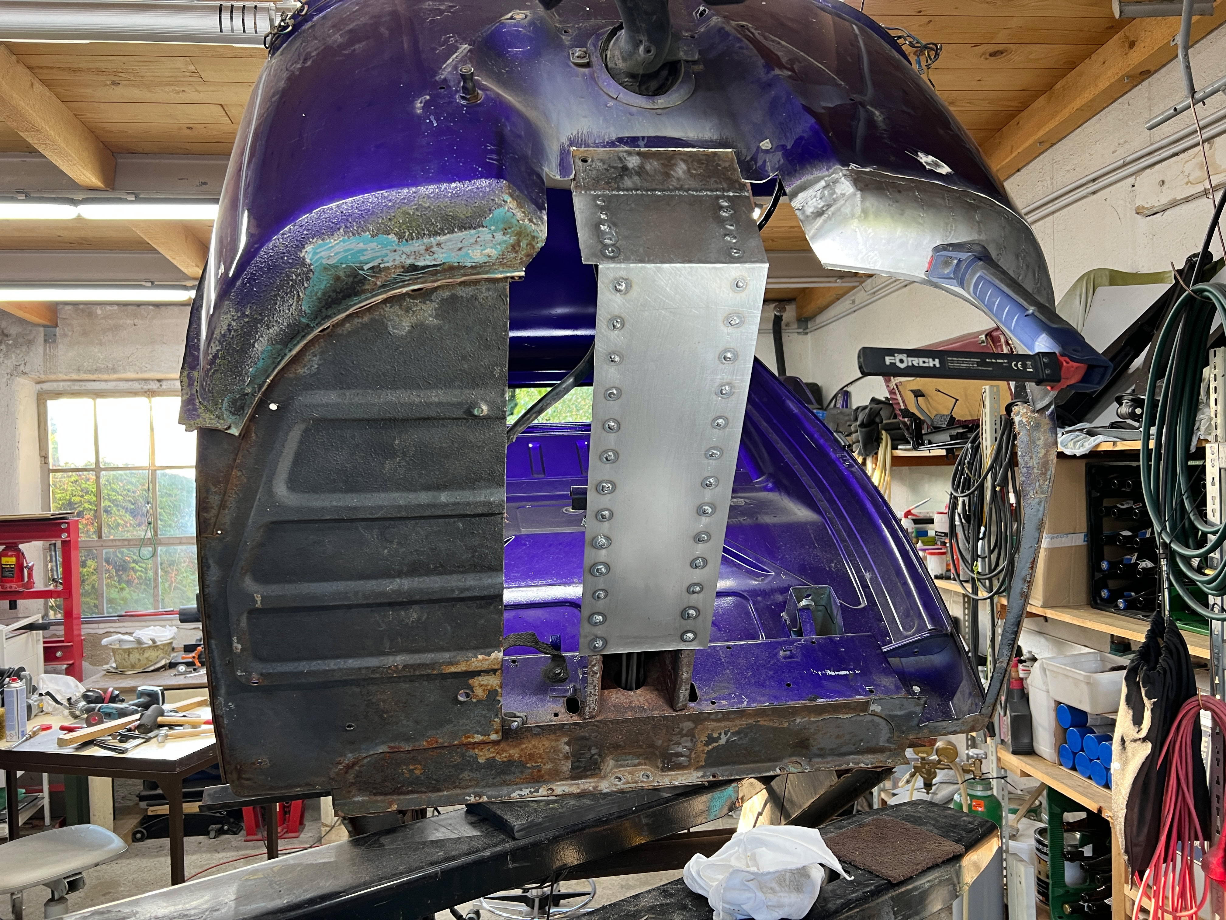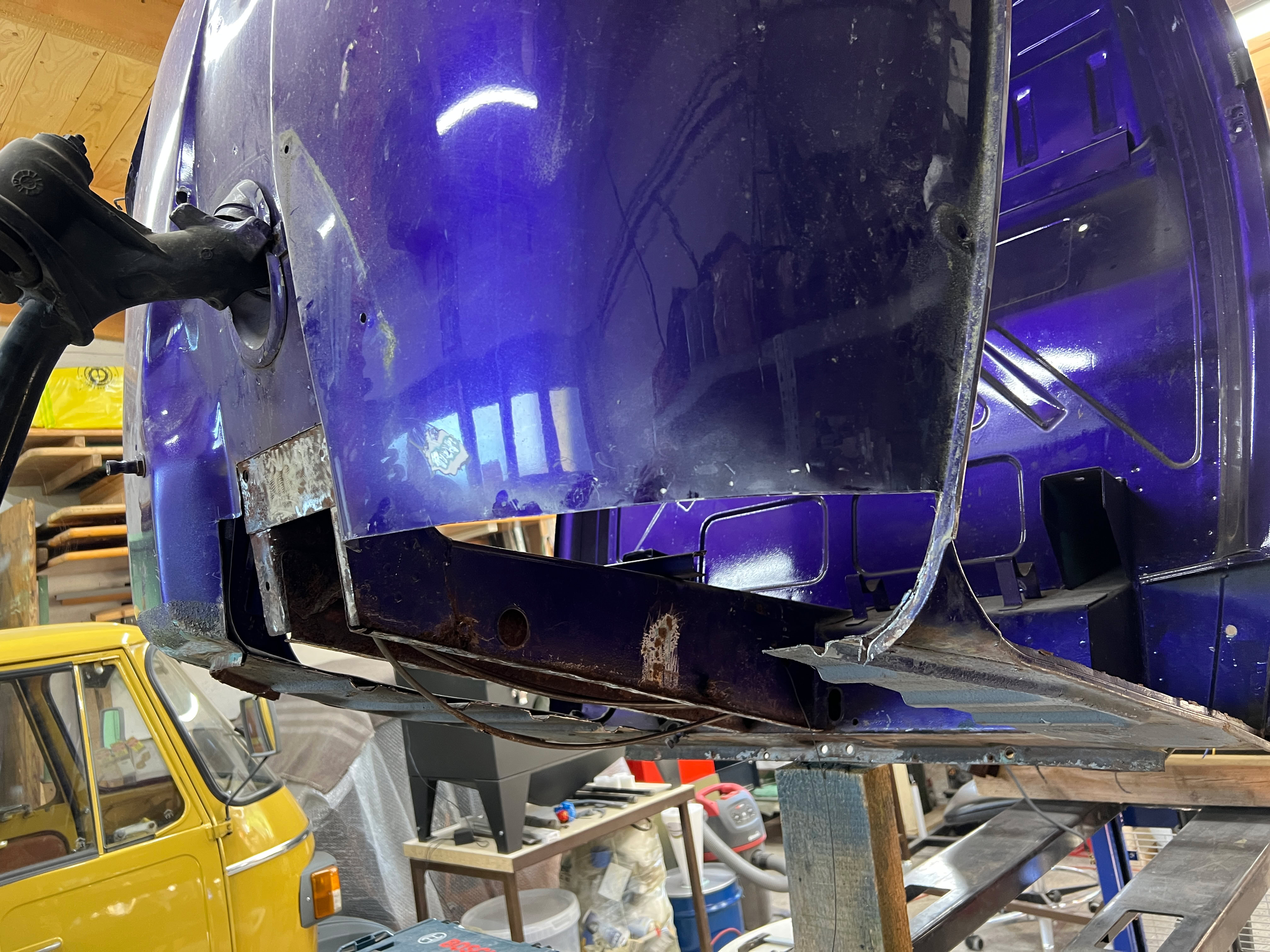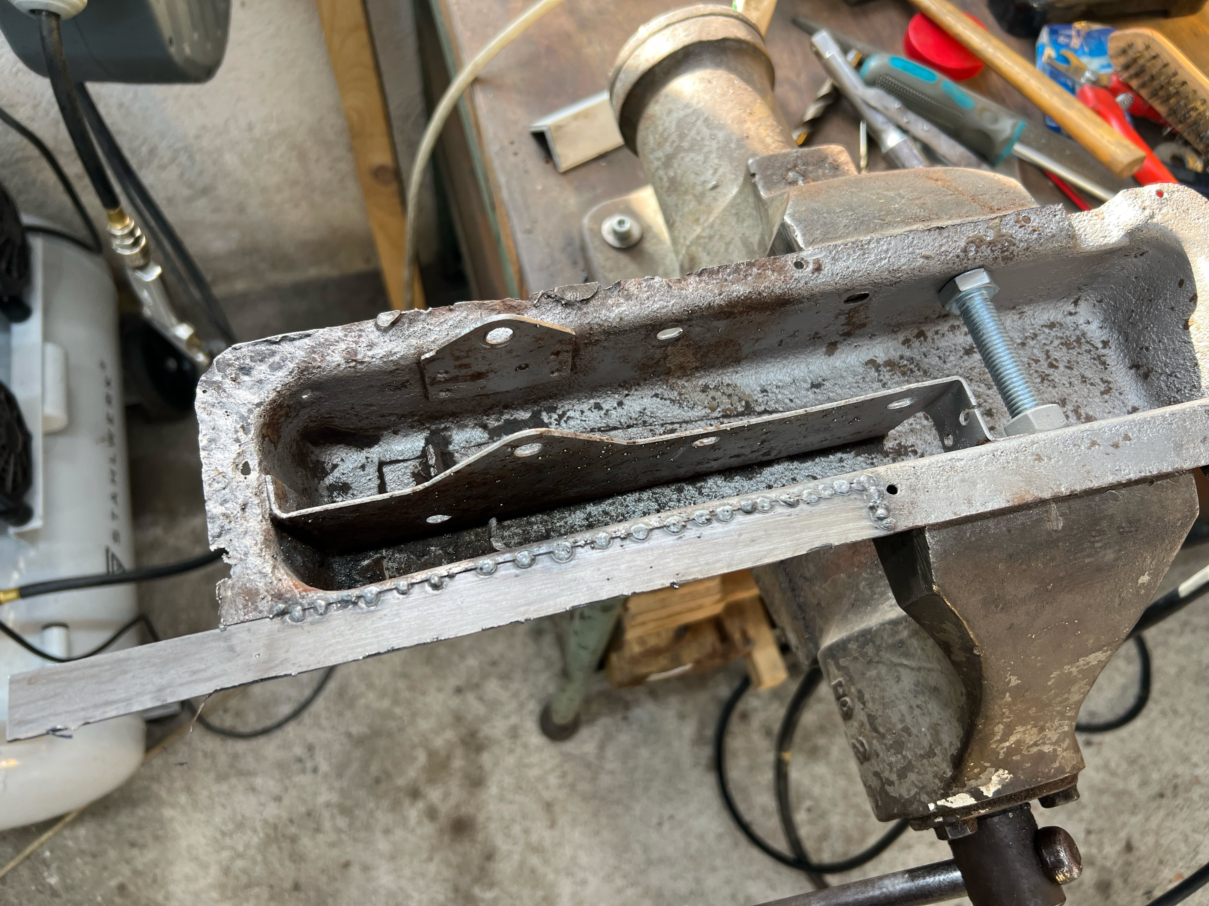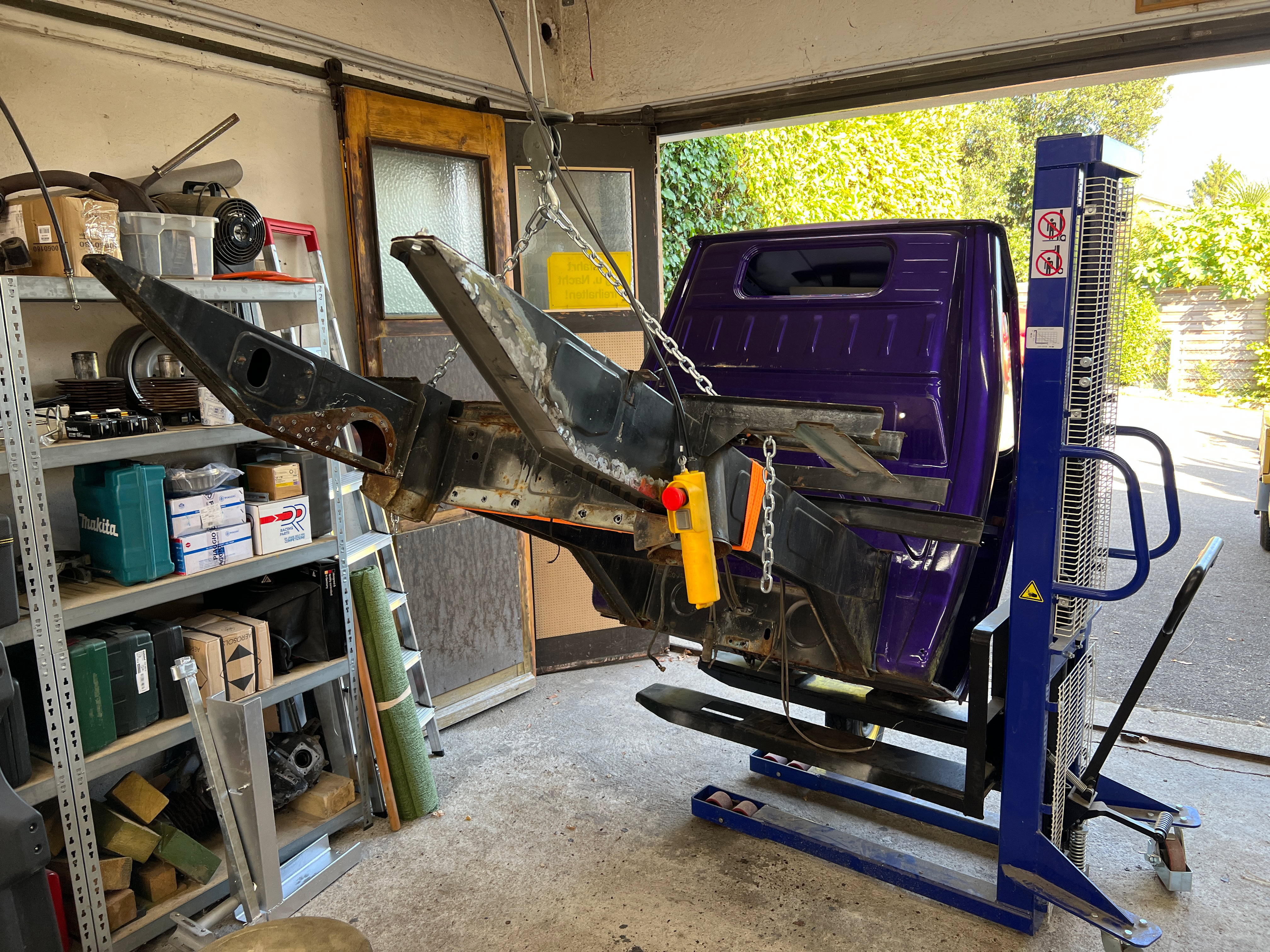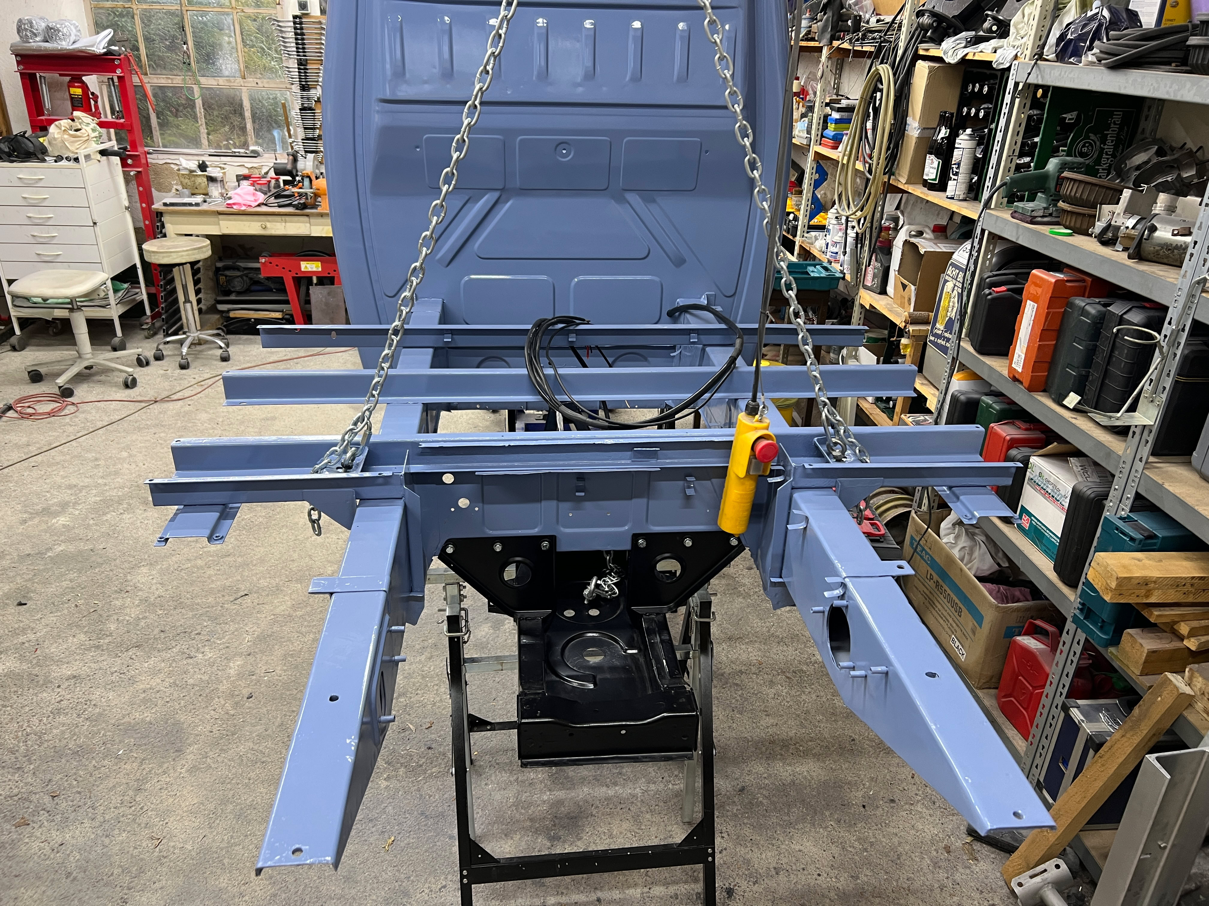 Ape 600 mpv, Baujahr 1972, ursprünglich als Eiswagen umgebaut. Jetzt ohne Pritsche und Motor erworben. Die Ape wurde zerlegt, geschweißt und neu aufgebaut. Ein gebrauchter Motor wurde komplett aufgearbeitet und eingebaut. Die Ape ist inzwischen taubenblau lackiert. Zur Zeit ist die Ladefläche in Arbeit. Es ist eine 2m-Pritsche einer Ape Classic. Deren Motorklappe wurde deshalb entsprechend versetzt und die Unterkonstruktion angepasst.
