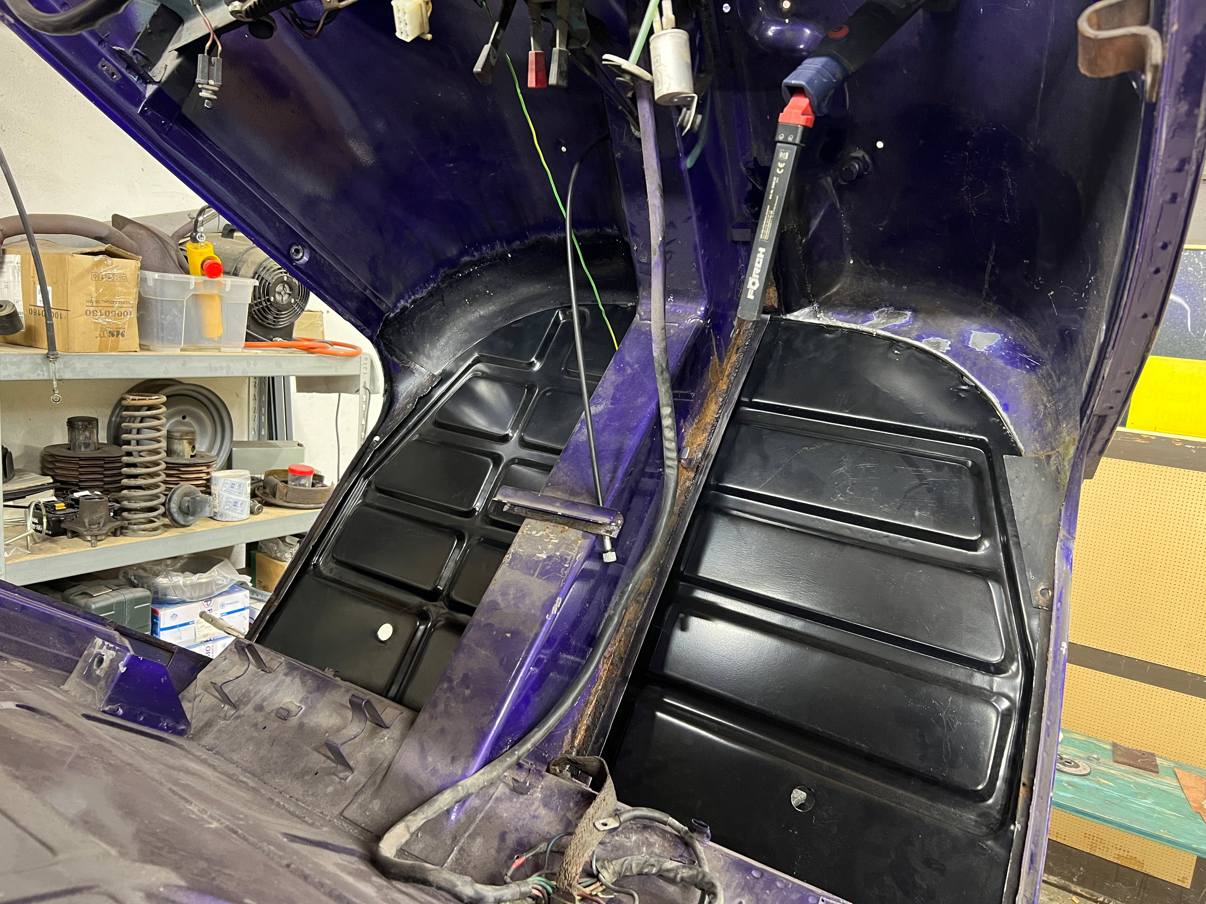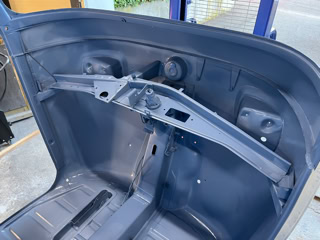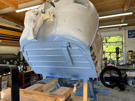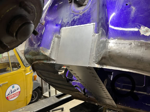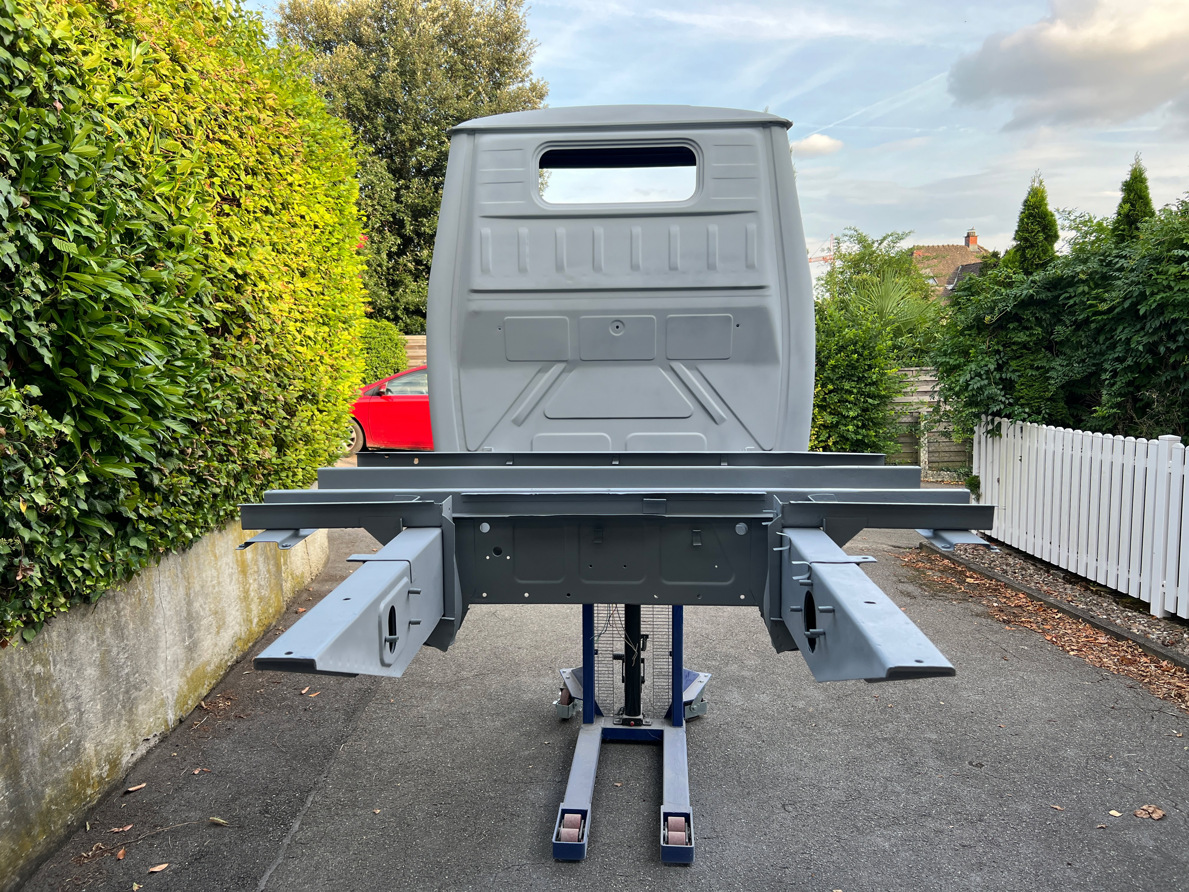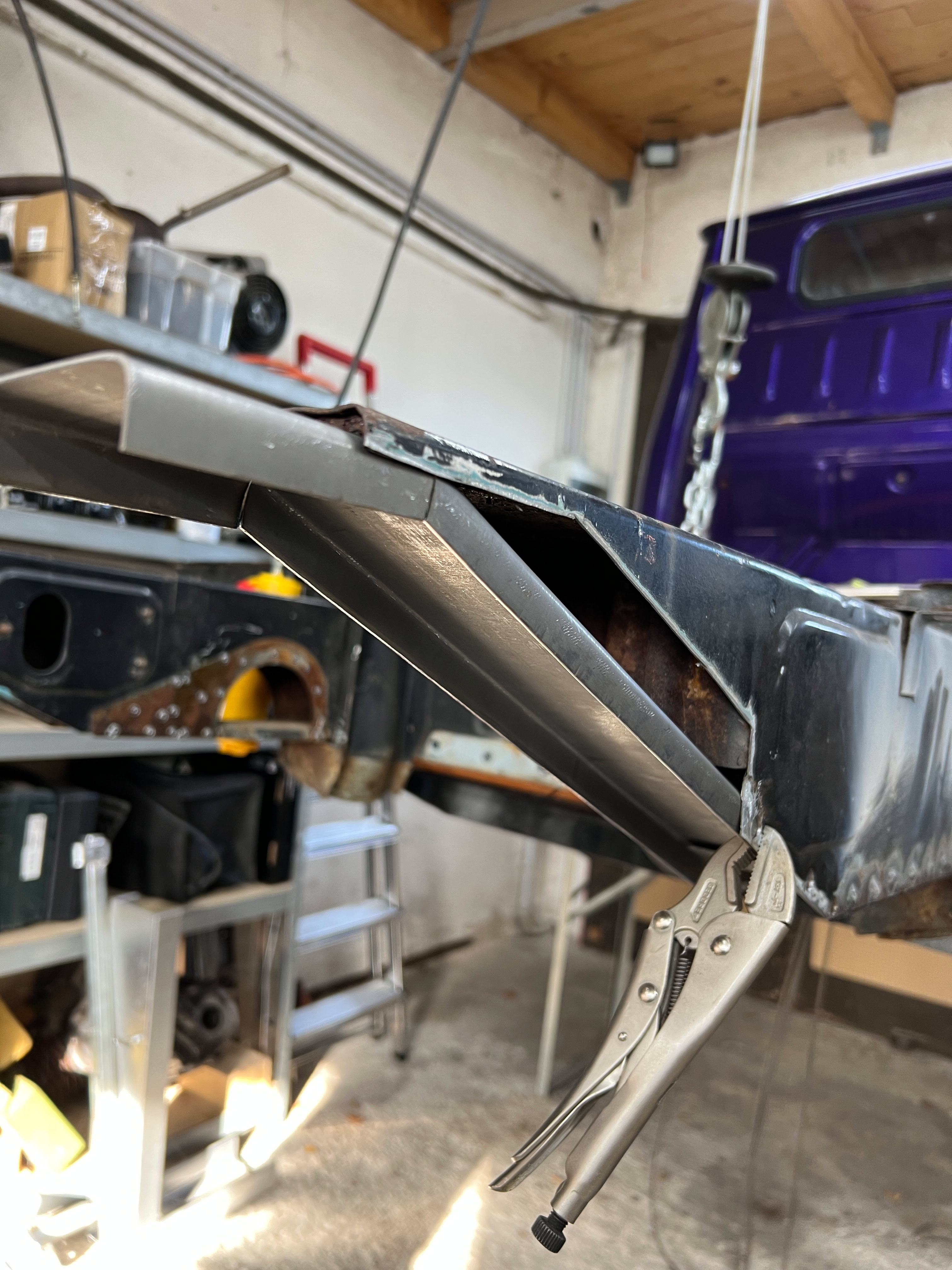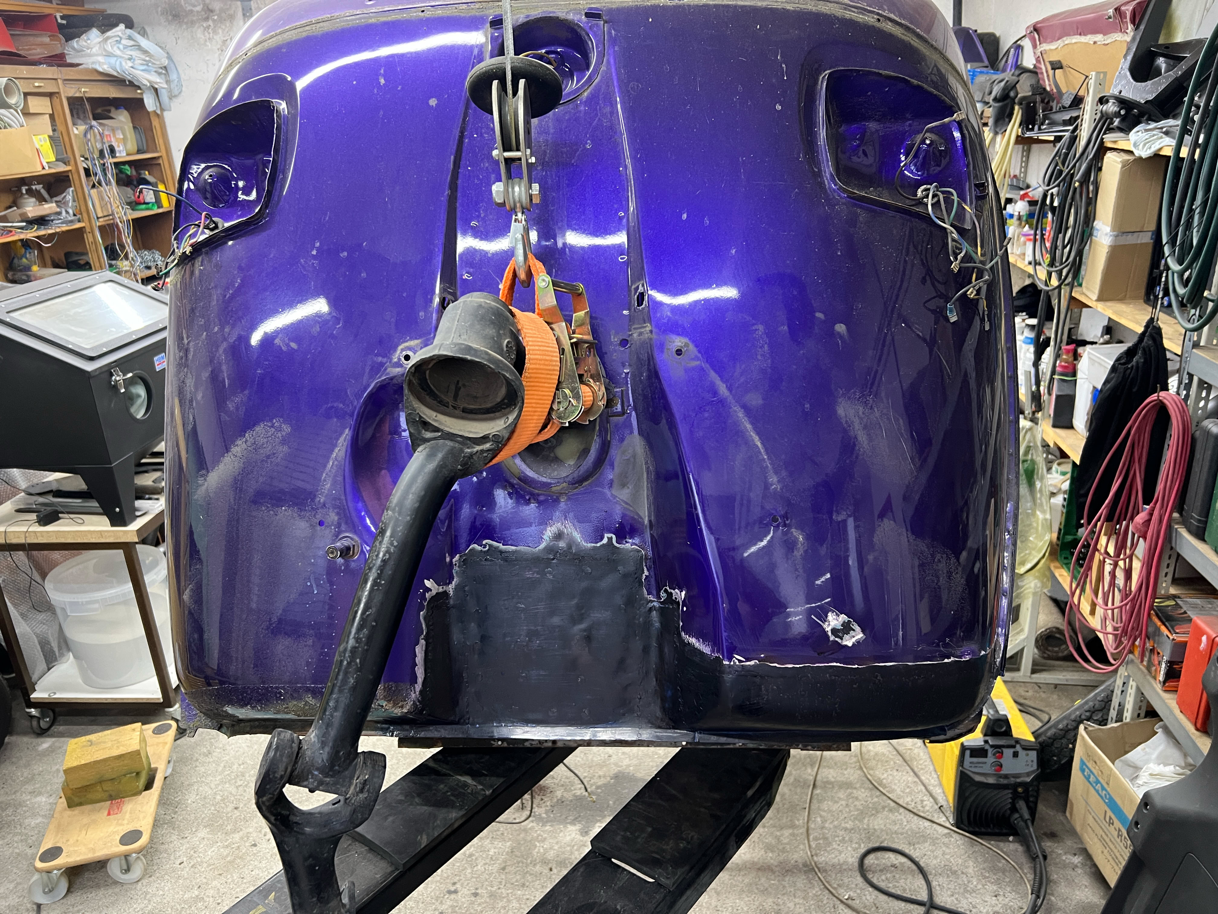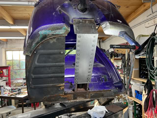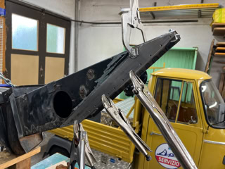 Ape 600 mpv, Baujahr 1972, ursprünglich als Eiswagen umgebaut. Jetzt ohne Pritsche und Motor erworben. Die Ape wurde zerlegt, geschweißt und neu aufgebaut. Ein gebrauchter Motor wurde komplett aufgearbeitet und eingebaut. Die Ape ist inzwischen taubenblau lackiert. Zur Zeit ist die Ladefläche in Arbeit. Es ist eine 2m-Pritsche einer Ape Classic. Deren Motorklappe wurde deshalb entsprechend versetzt und die Unterkonstruktion angepasst.