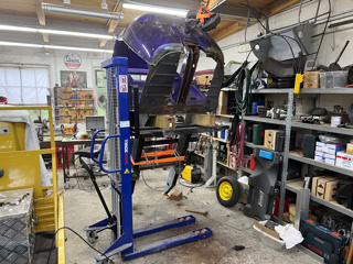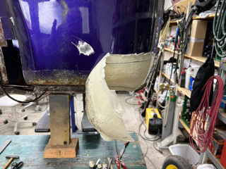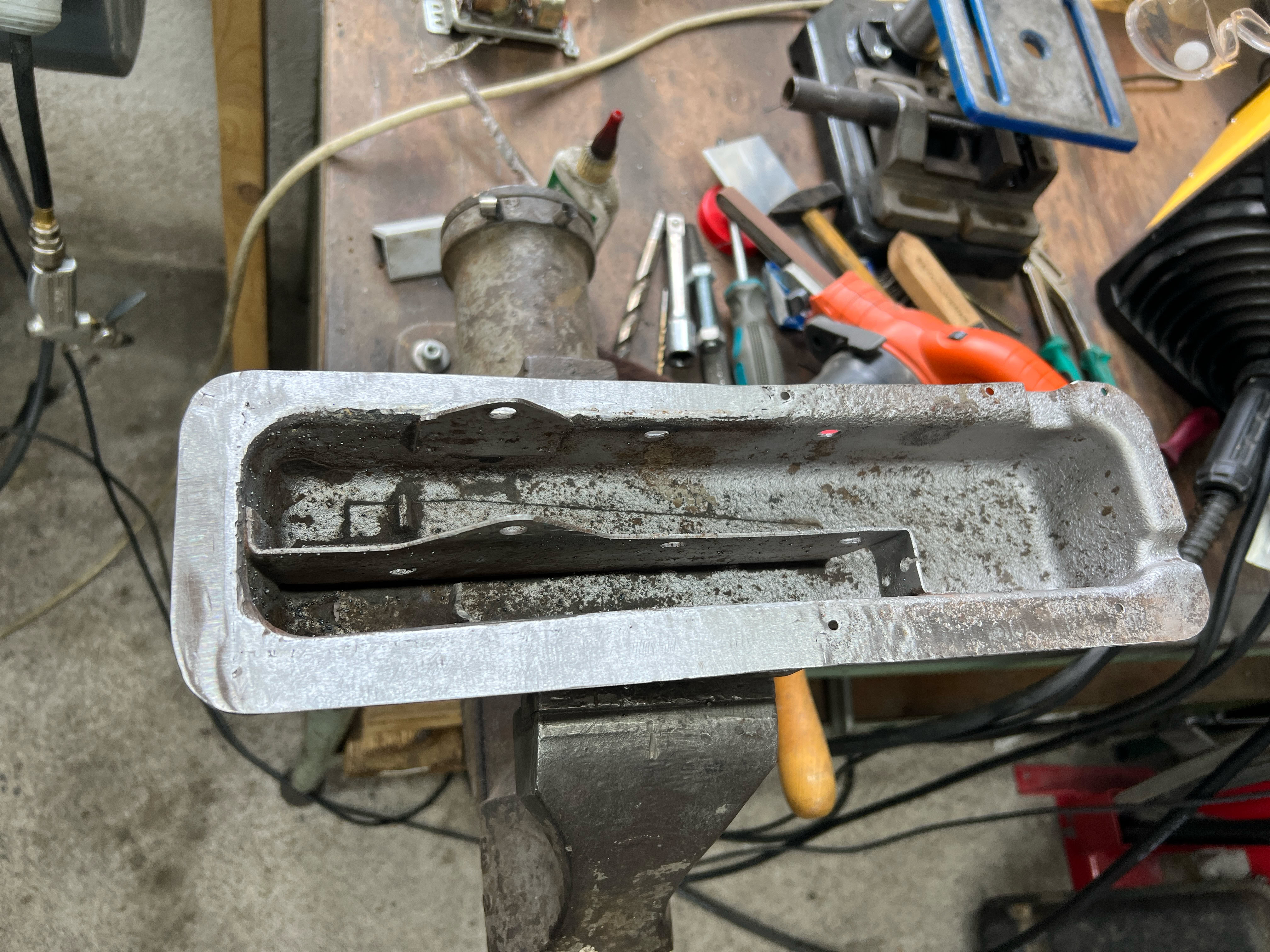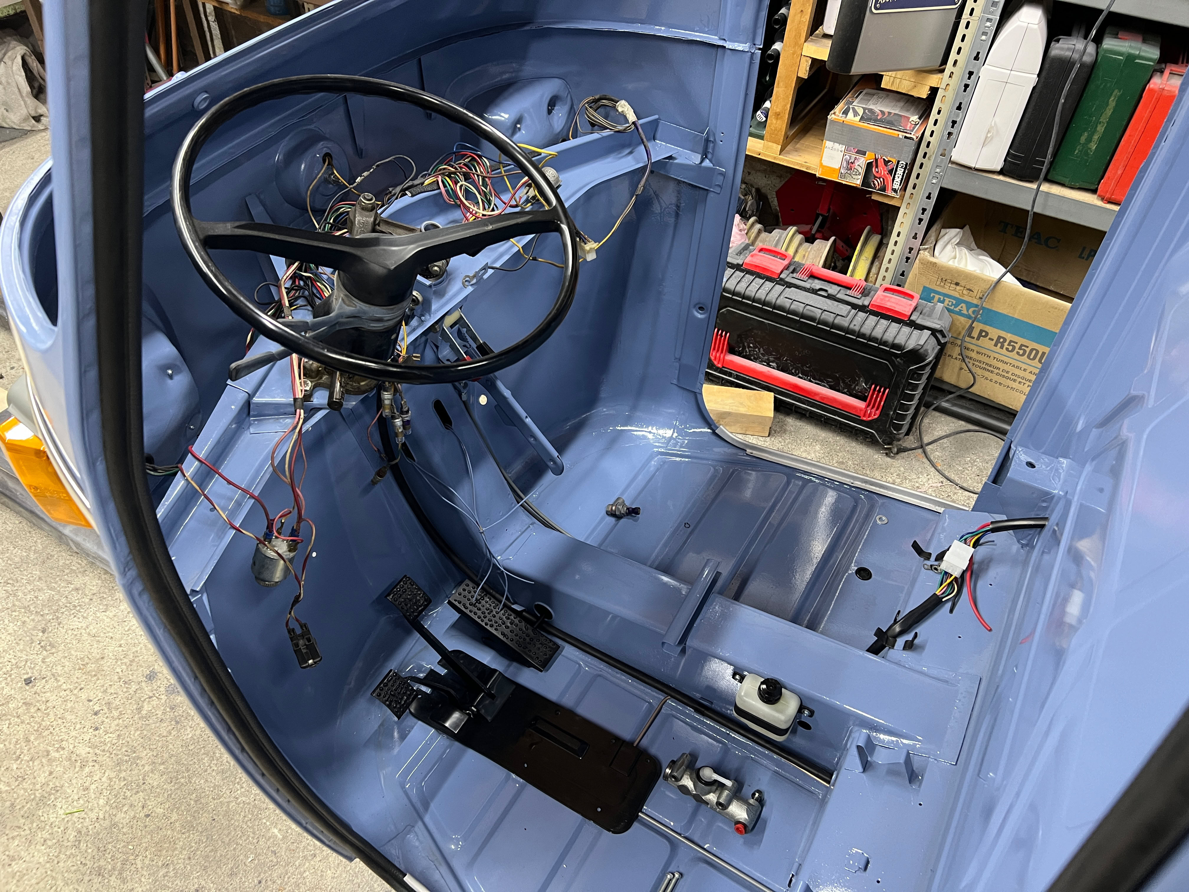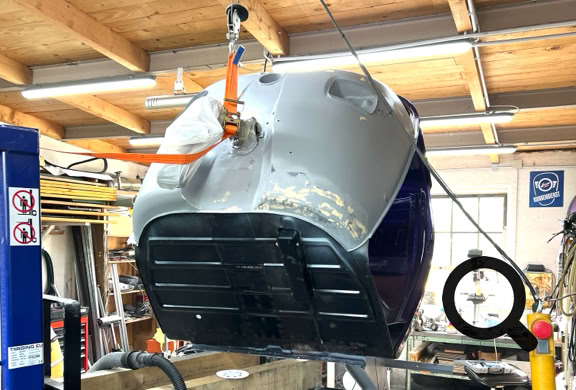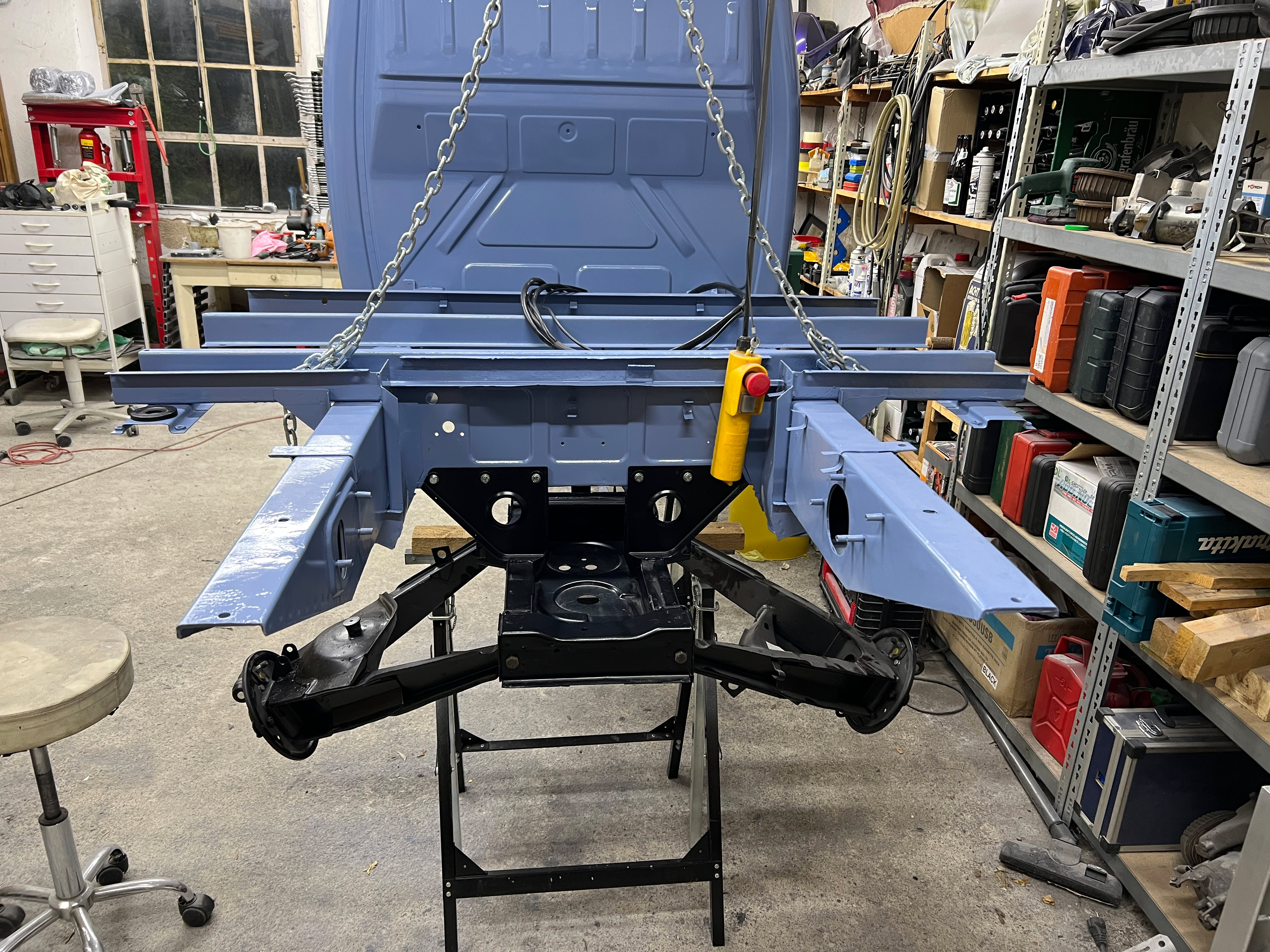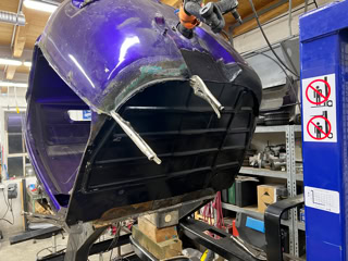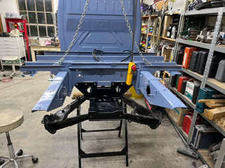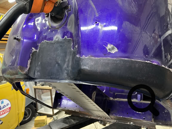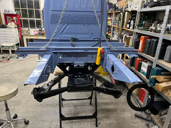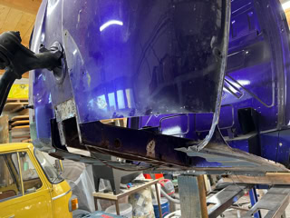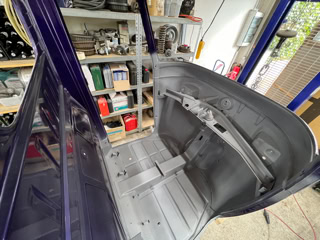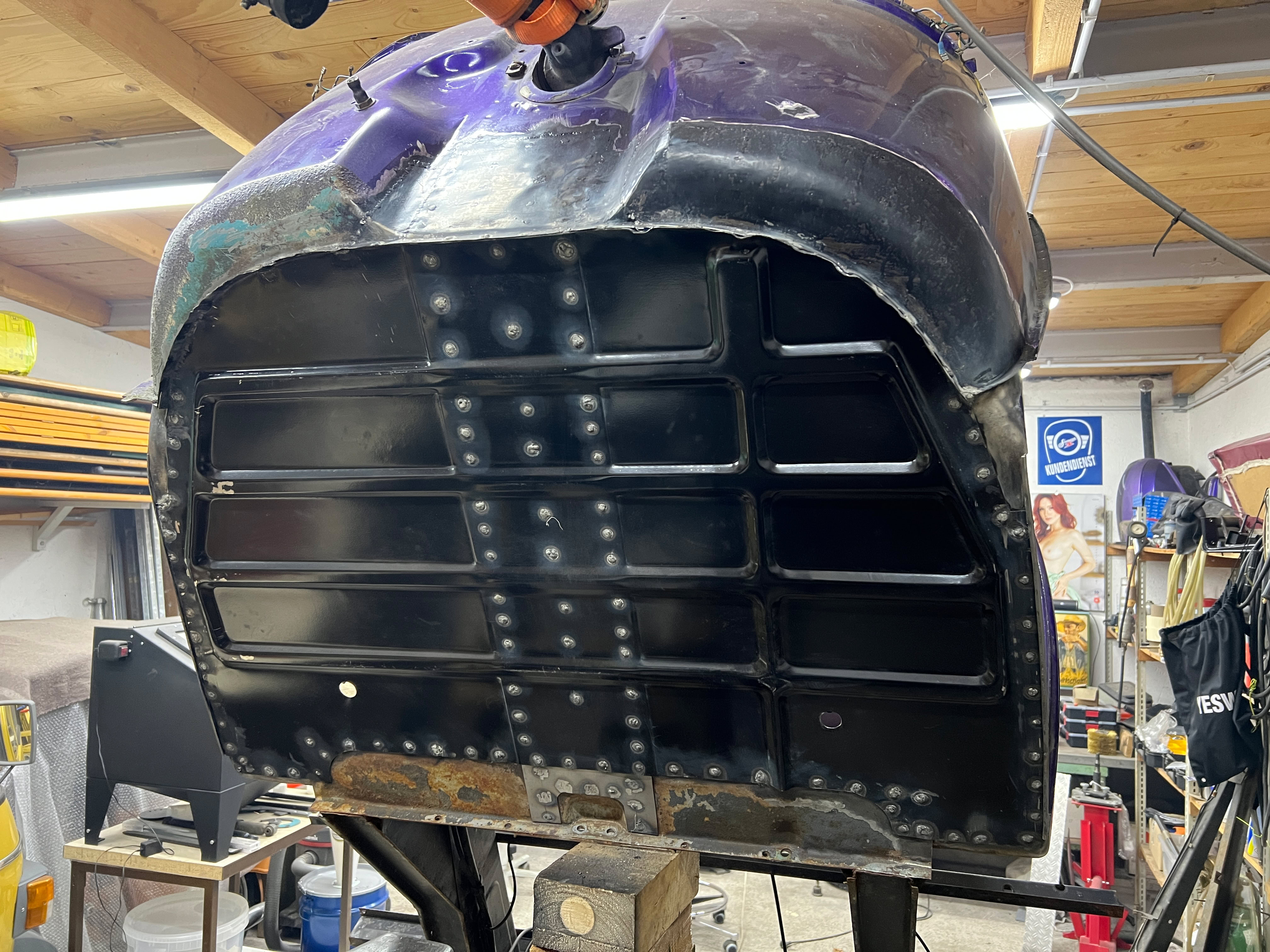Ape 600 mpv, Baujahr 1972, ursprünglich als Eiswagen umgebaut. Jetzt ohne Pritsche und Motor erworben. Die Ape wurde zerlegt, geschweißt und neu aufgebaut. Ein gebrauchter Motor wurde komplett aufgearbeitet und eingebaut. Die Ape ist inzwischen taubenblau lackiert. Zur Zeit ist die Ladefläche in Arbeit. Es ist eine 2m-Pritsche einer Ape Classic. Deren Motorklappe wurde deshalb entsprechend versetzt und die Unterkonstruktion angepasst.