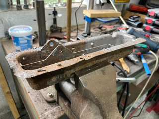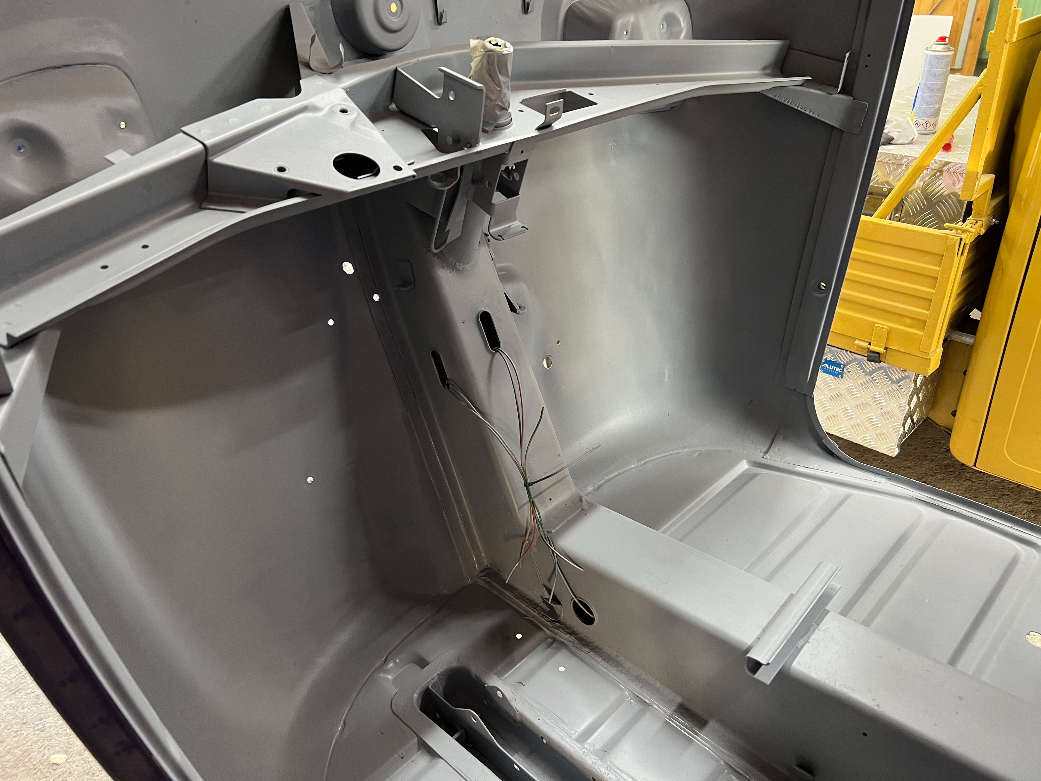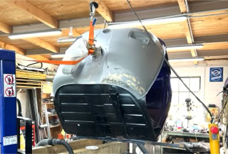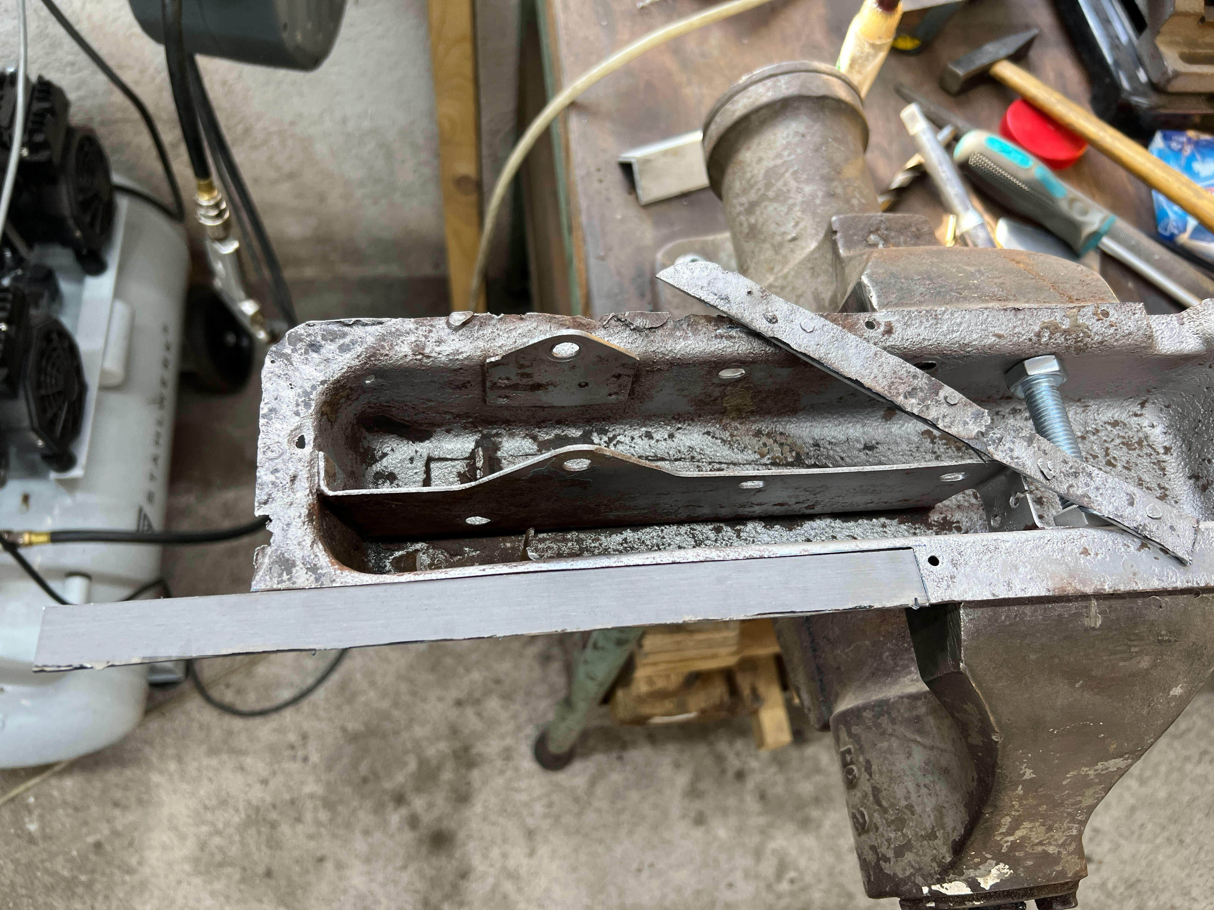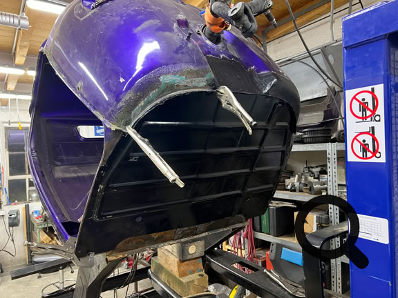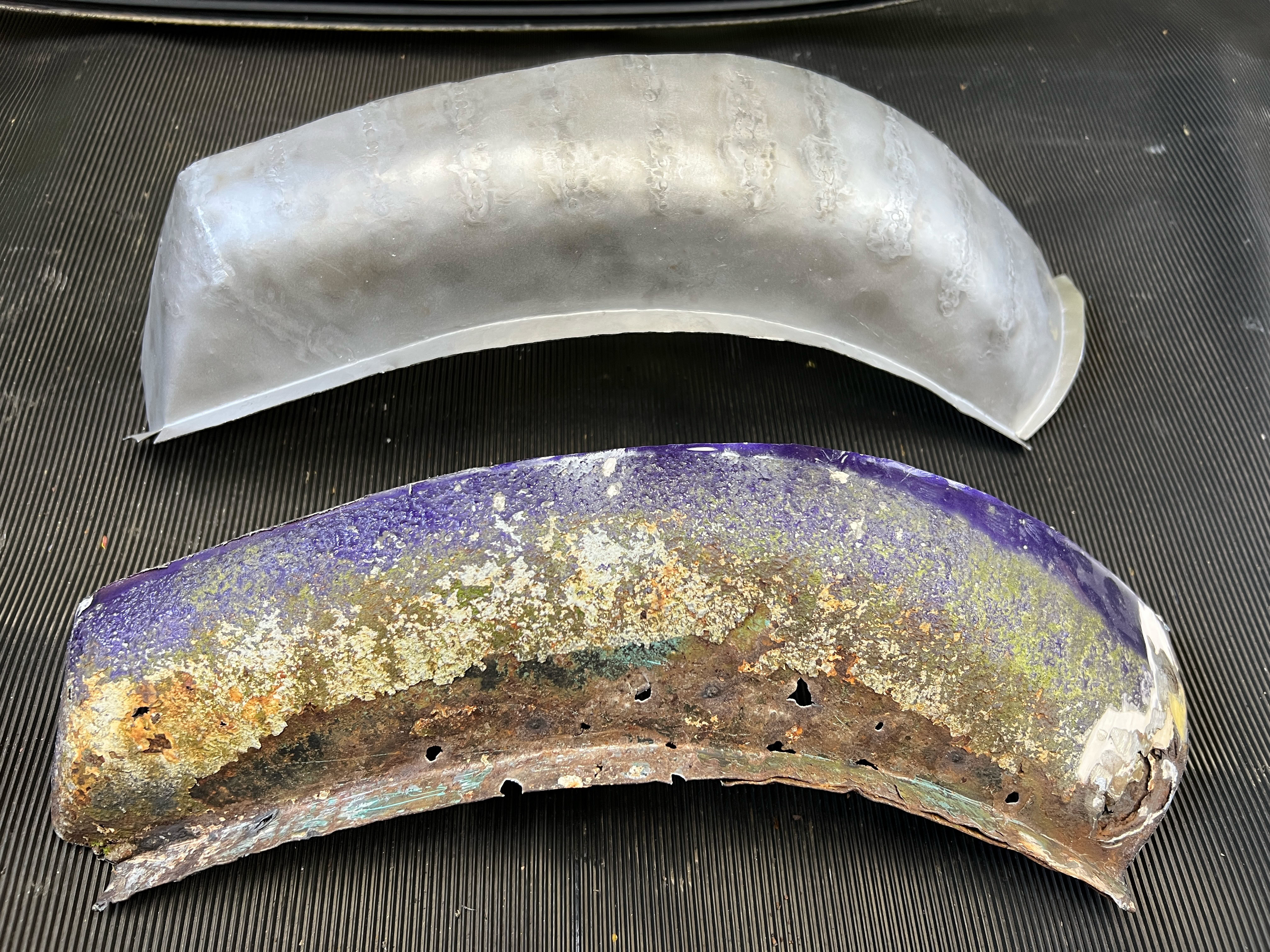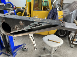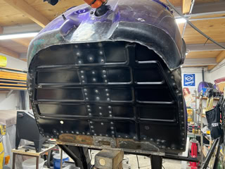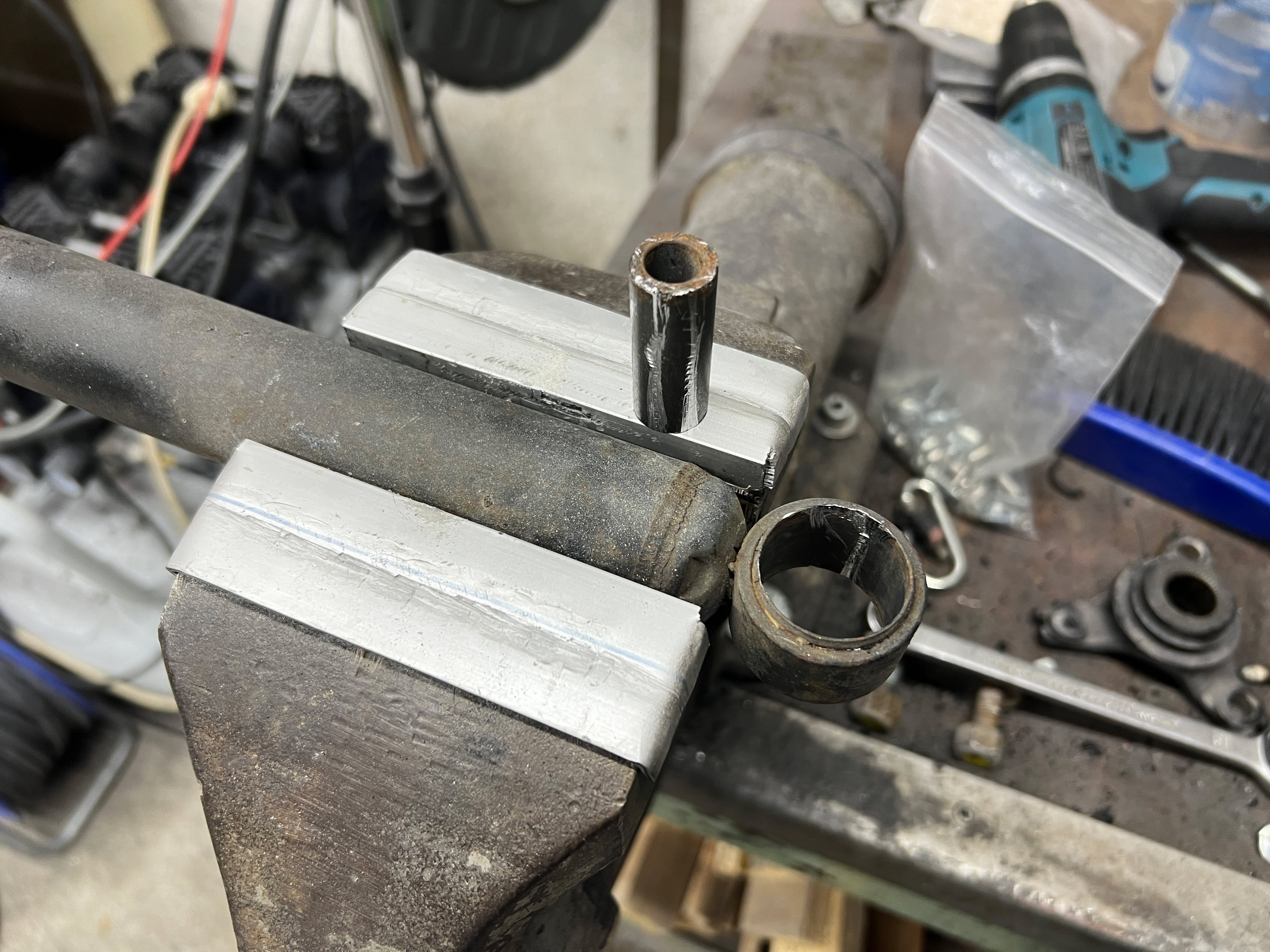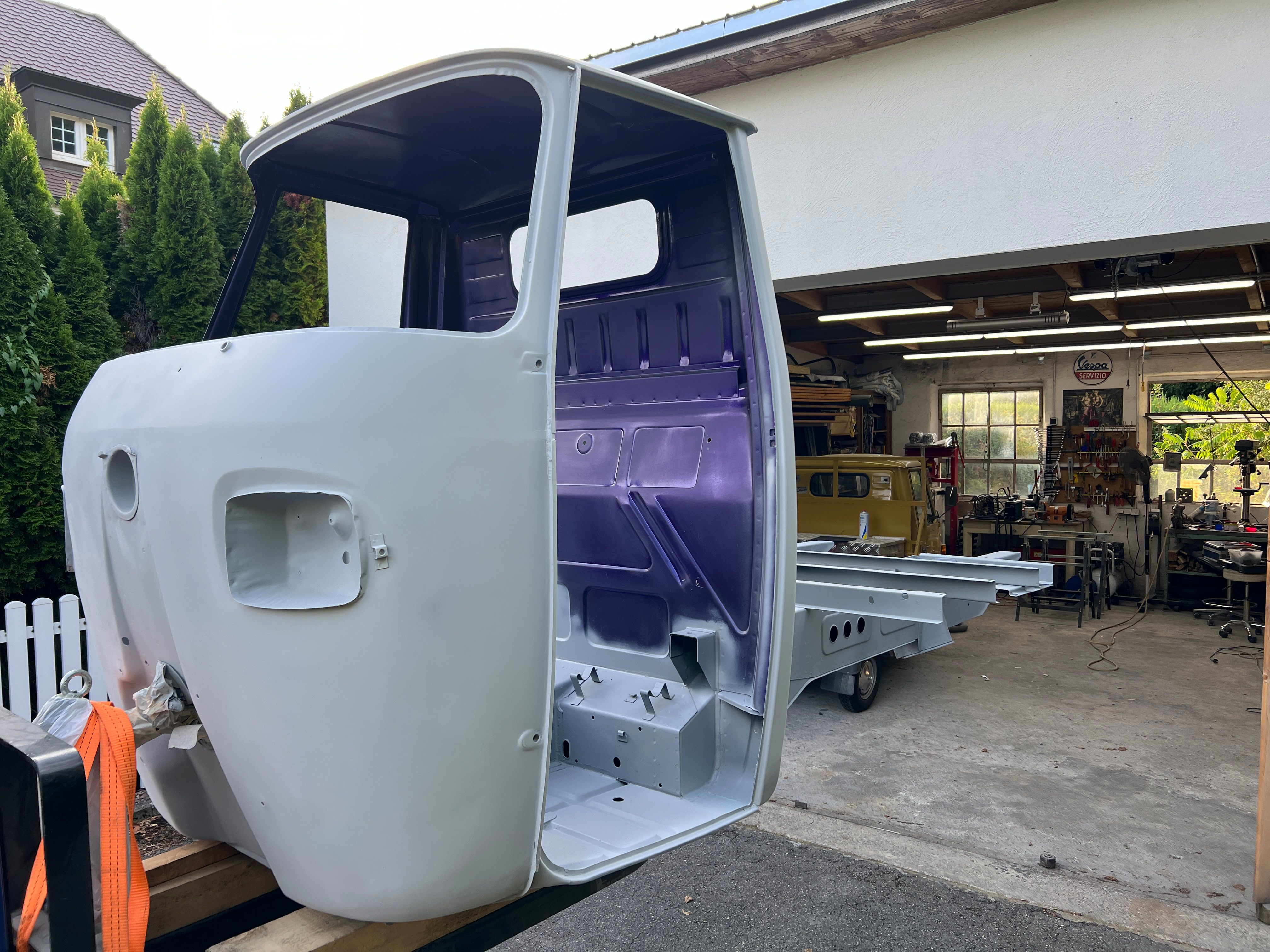 Ape 600 mpv, Baujahr 1972, ursprünglich als Eiswagen umgebaut. Jetzt ohne Pritsche und Motor erworben. Die Ape wurde zerlegt, geschweißt und neu aufgebaut. Ein gebrauchter Motor wurde komplett aufgearbeitet und eingebaut. Die Ape ist inzwischen taubenblau lackiert. Zur Zeit ist die Ladefläche in Arbeit. Es ist eine 2m-Pritsche einer Ape Classic. Deren Motorklappe wurde deshalb entsprechend versetzt und die Unterkonstruktion angepasst.